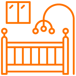 - fehér kiságyak 120×60 cm-es és 140×70 cm-es méretekben