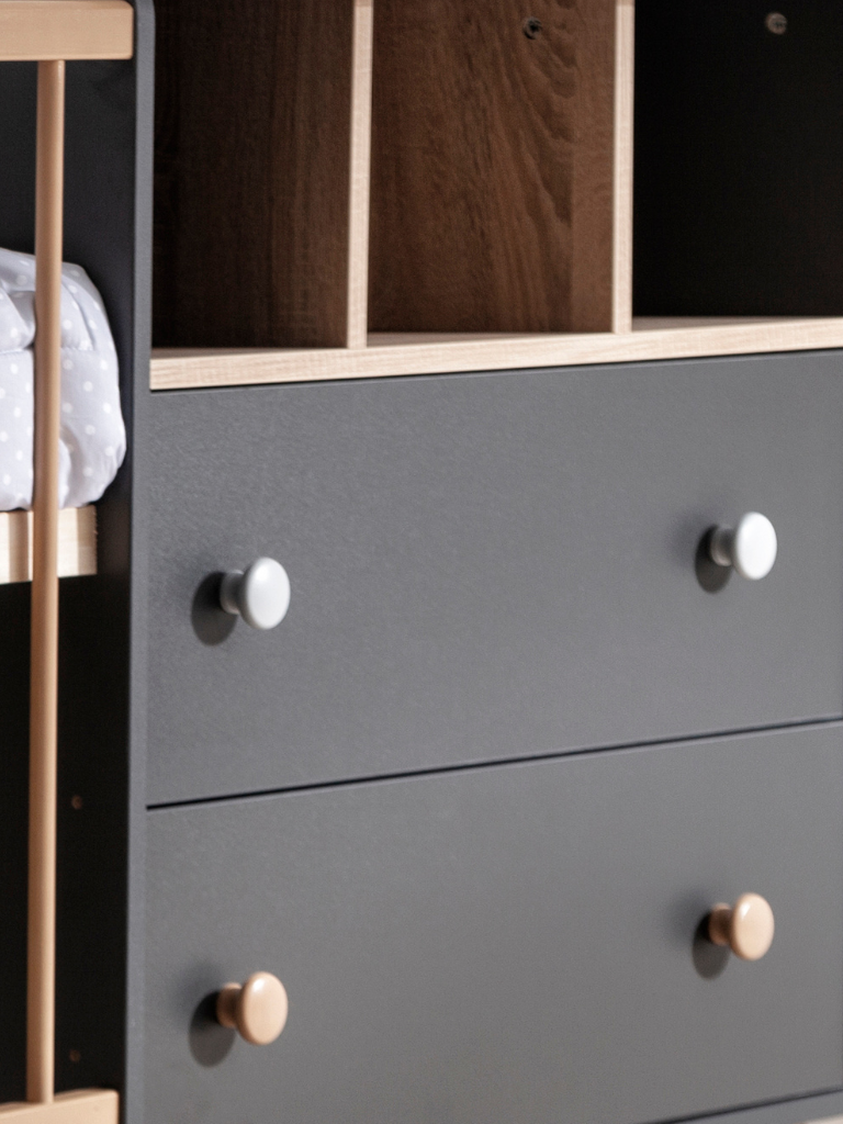 Dominant and powerful appearance, with a color scheme that matches the latest interior design trends. The innovative color combination enables the design of a modern and elegant children's room. In the Colette anthracite room, you can safely use adult accessories, they will make the appearance of the room more generous.