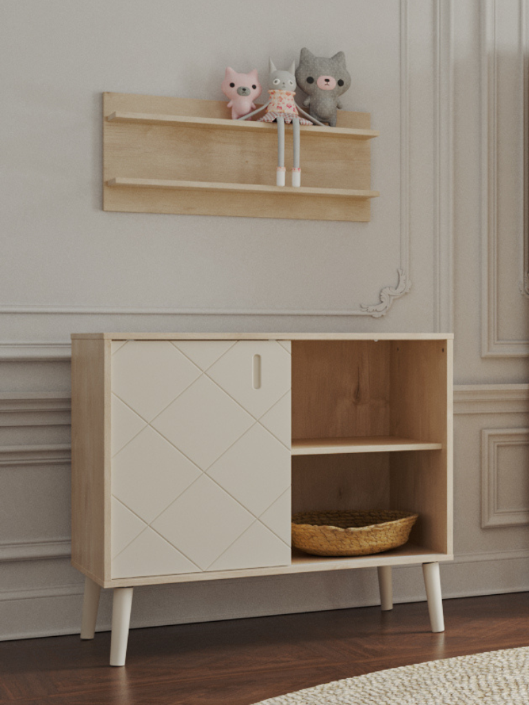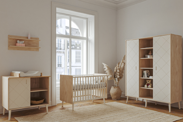 Breakthrough style for the homes of design-loving families. The oak-grained furniture panel radiates warmth and the silk-gloss painted MDF pair exudes clarity at the same time. The Peak furniture family brings a charming coziness to the children's room.