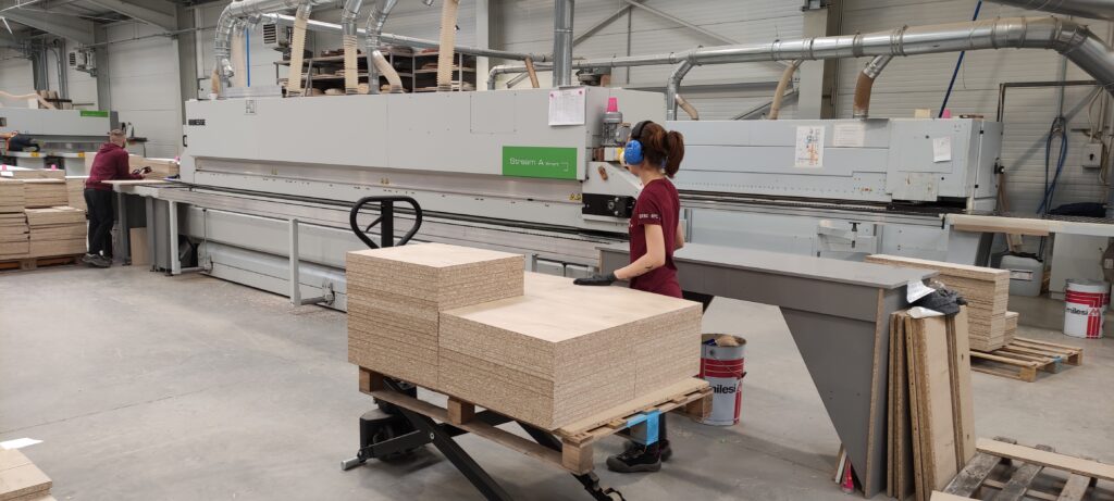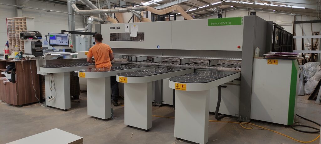 Our company, Faktum Bútor Kft., has been awarded HUF 148.77 million in conditionally repayable support under the GINOP-1.2.14-20-2021-00005 project, titled “Support for the adaptation of micro, small, and medium-sized enterprises in the fashion and design industry to modern business and production challenges”, with a funding intensity of 70%. The primary goal of our company is to increase the manufacturing capacity of our products. We aim to produce high-quality, high value-added products that offer an outstanding price-to-value ratio, while optimising the efficiency of our production capacities. This grant has enabled us to better meet market demand through hall expansion and machinery acquisitions. With the construction of the new 1,150 m² production hall – facilitating LEAN-style material flow between machines and alleviating bottlenecks – we can transform our production processes from small-scale, “workshop-style” operations into modern, high-throughput industrial production with short lead times, minimising losses. The new hall houses one Biesse Stream A Smart 5.5 A single-sided edge-banding machine and one Biesse Selco WNT 6 panel dividing machine.