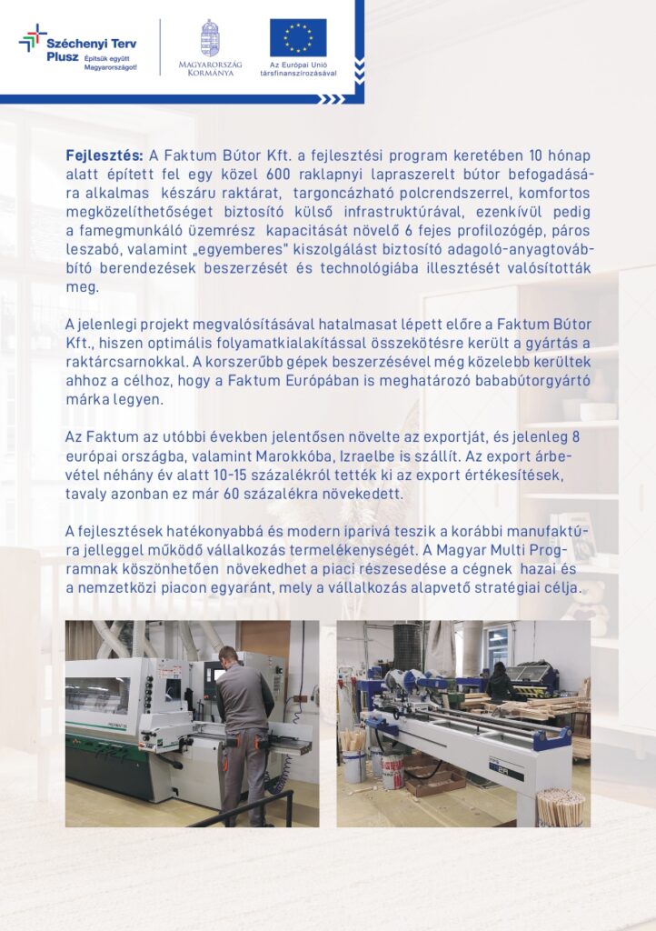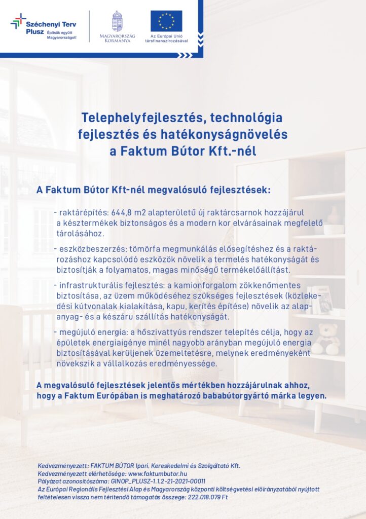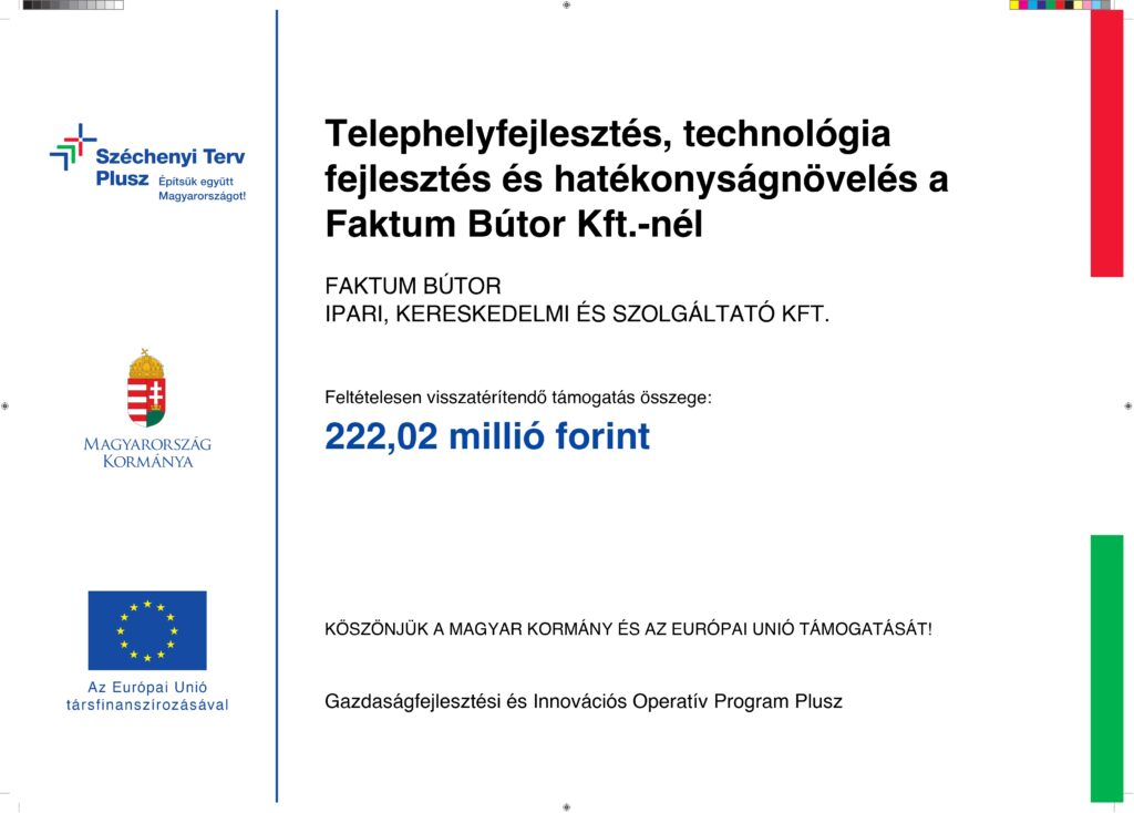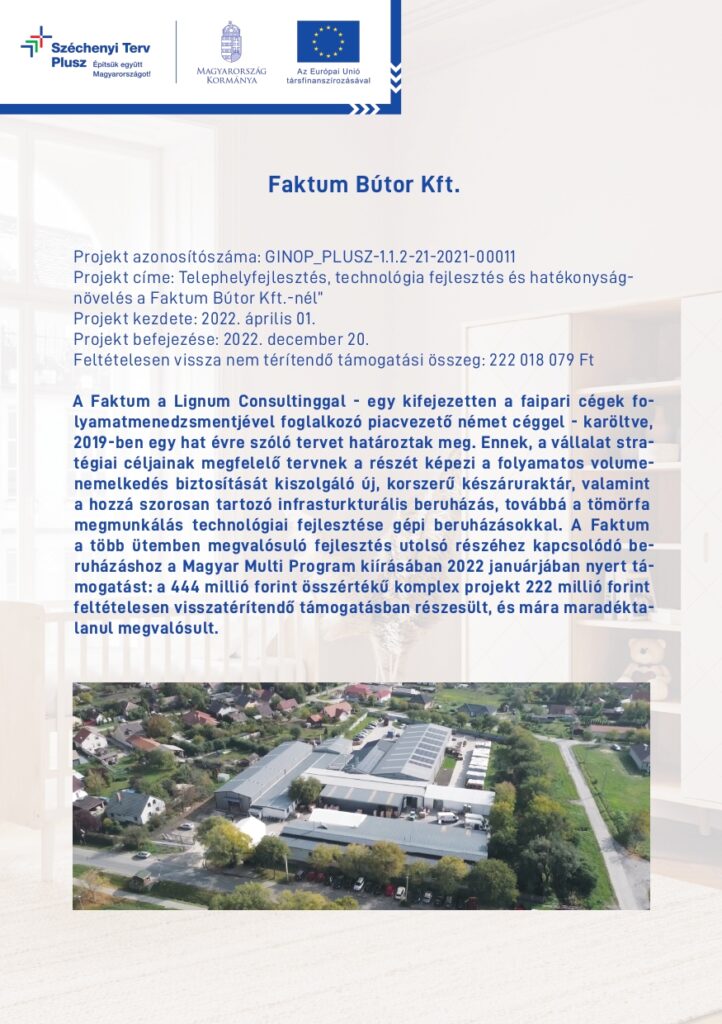 - Project Title: Technology Improvement, Capacity Expansion and Headquarters Development at Faktum Bútor Kft.