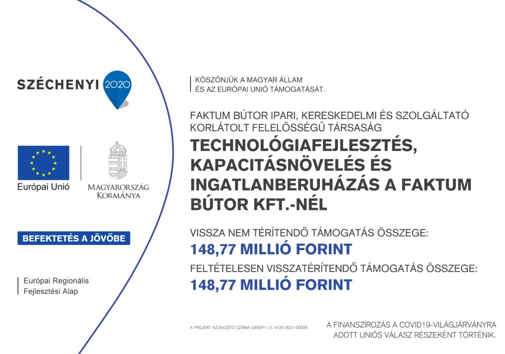 FAKTUM BÚTOR Ipari, Kereskedelmi és Szolgáltató Kft. successfully applied for the “GINOP-4.1.4-19