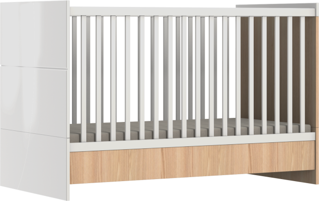 - Technology: The sides of the cot are attached with a hidden system, so no screws or holes are visible on the headboard or footboard.