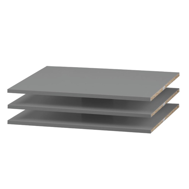 Additional shelf set for the 3-part cabinet. The set contains 3 shelves.