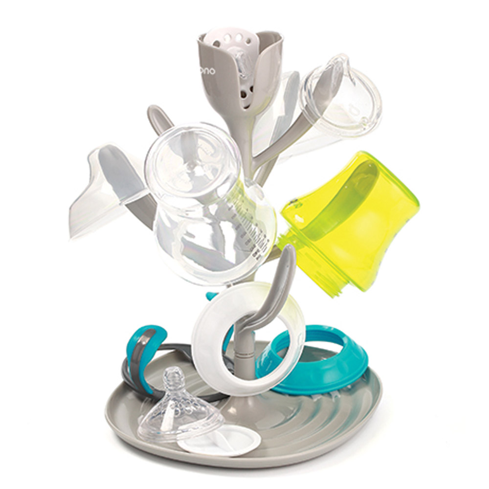 A tulipán formájú cumisüveg szárítóra 8 darab cumisüveg, cumi és egyéb kiegészítő fér.