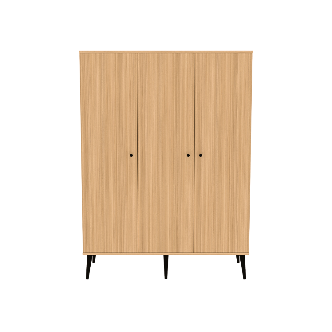 Our most popular large wardrobe. While it takes up more space, it also offers greater storage capacity. The two right-hand compartments are fully shelved, while the third compartment includes two hanging rails and a shelf at the bottom. If desired, the entire interior of the wardrobe can be fitted with shelves by purchasing an additional shelf set. You can be sure that this wardrobe will accompany your child all the way to young adulthood.
