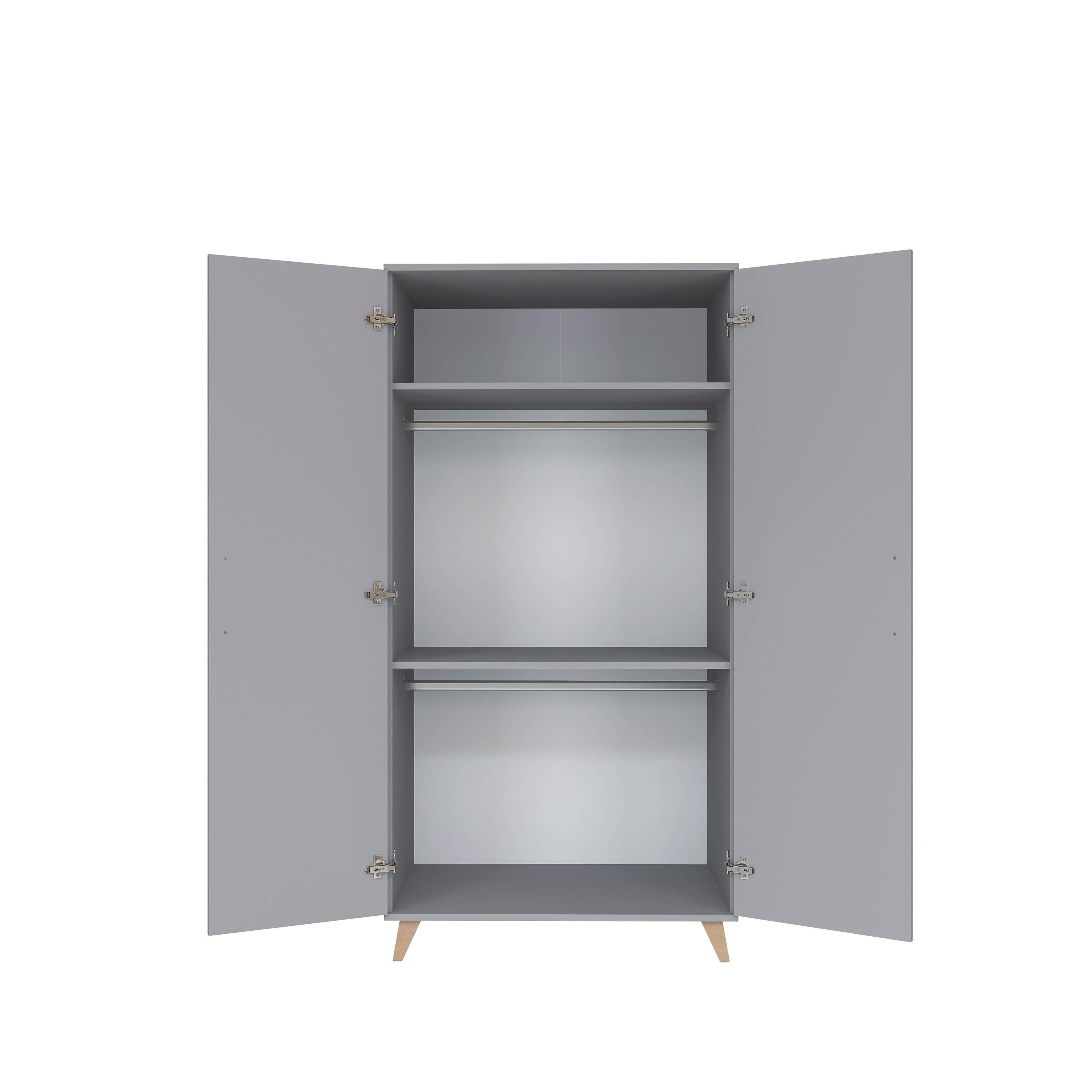The Wardrobe is an ideal choice, providing ample space for your baby’s first belongings. It can be perfectly combined with other pieces of the collection, making it easy to create a nursery that little ones will never grow tired of. Inside, the wardrobe includes 2 fixed shelves complemented by 2 hanging rails. Thanks to its stable, elegant legs, cleaning underneath the wardrobe is effortless.