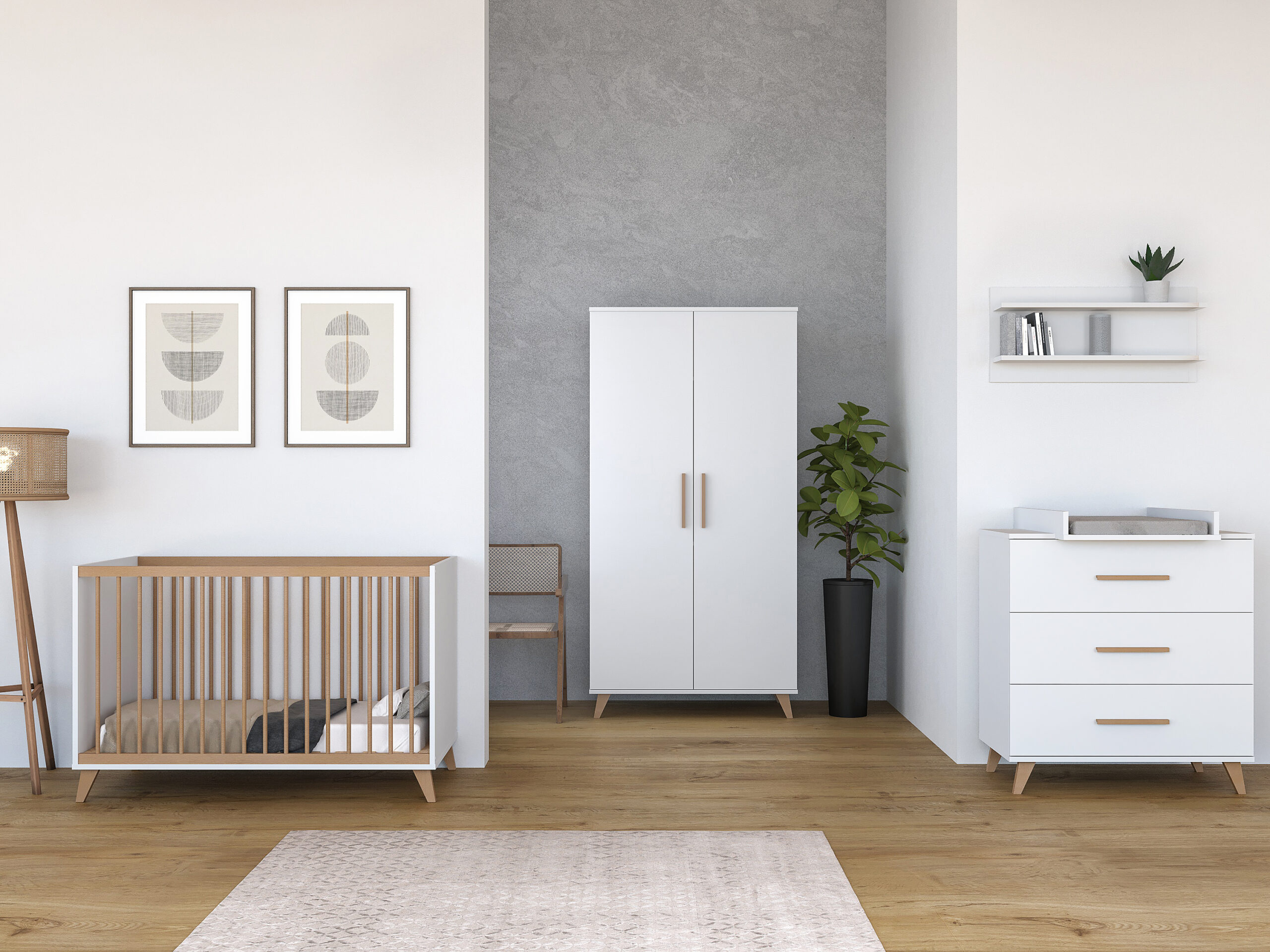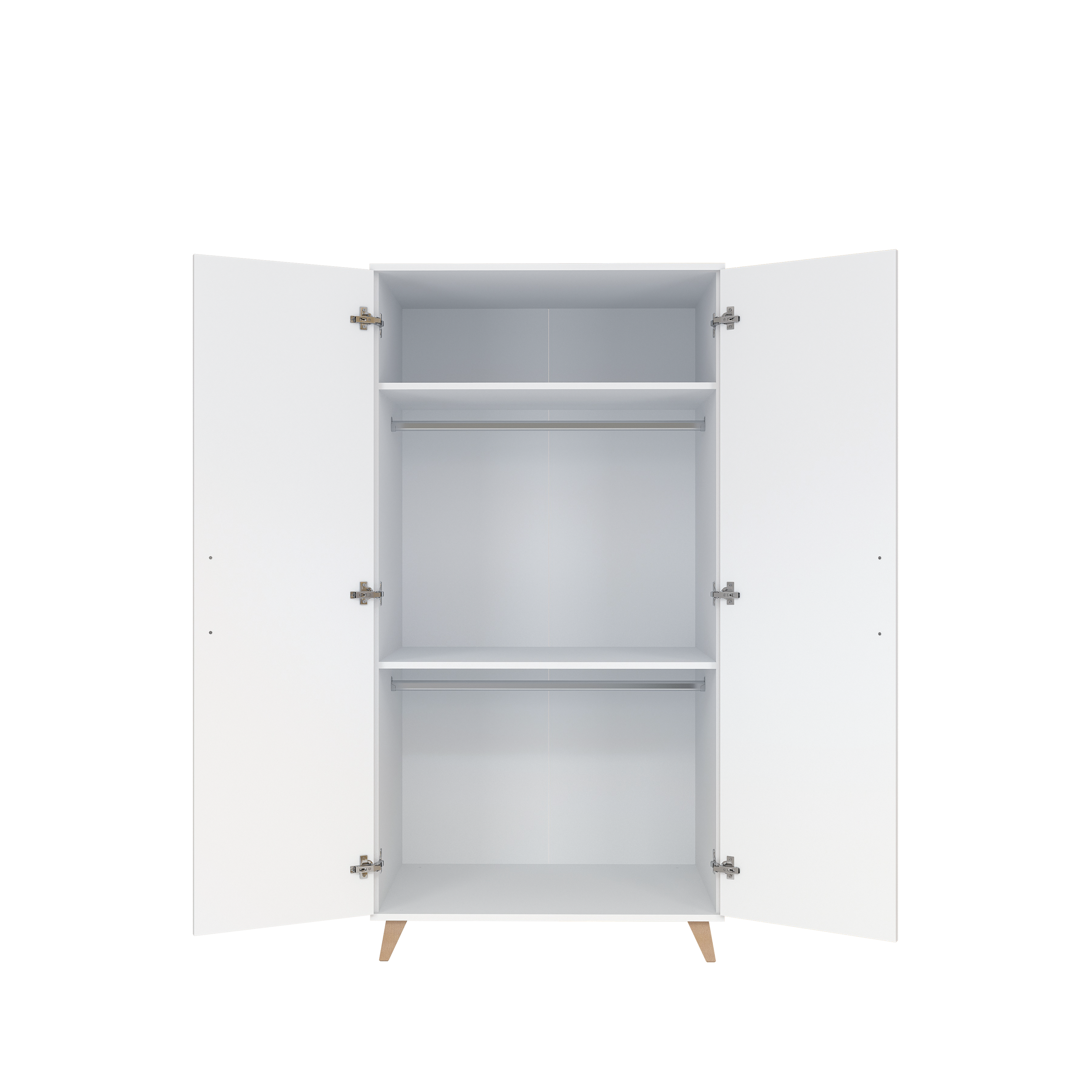 Selecting the FLIP White kétosztású szekrény tökéletes választás a babaszoba berendezéséhez, ha szeretnél elegáns, mégis praktikus tárolómegoldást. Két fix polc és két akasztórúd biztosítja, hogy minden ruha és kiegészítő könnyedén rendszerezhető legyen – a legkisebb bodyktól egészen a kamaszkori kedvenc darabokig.