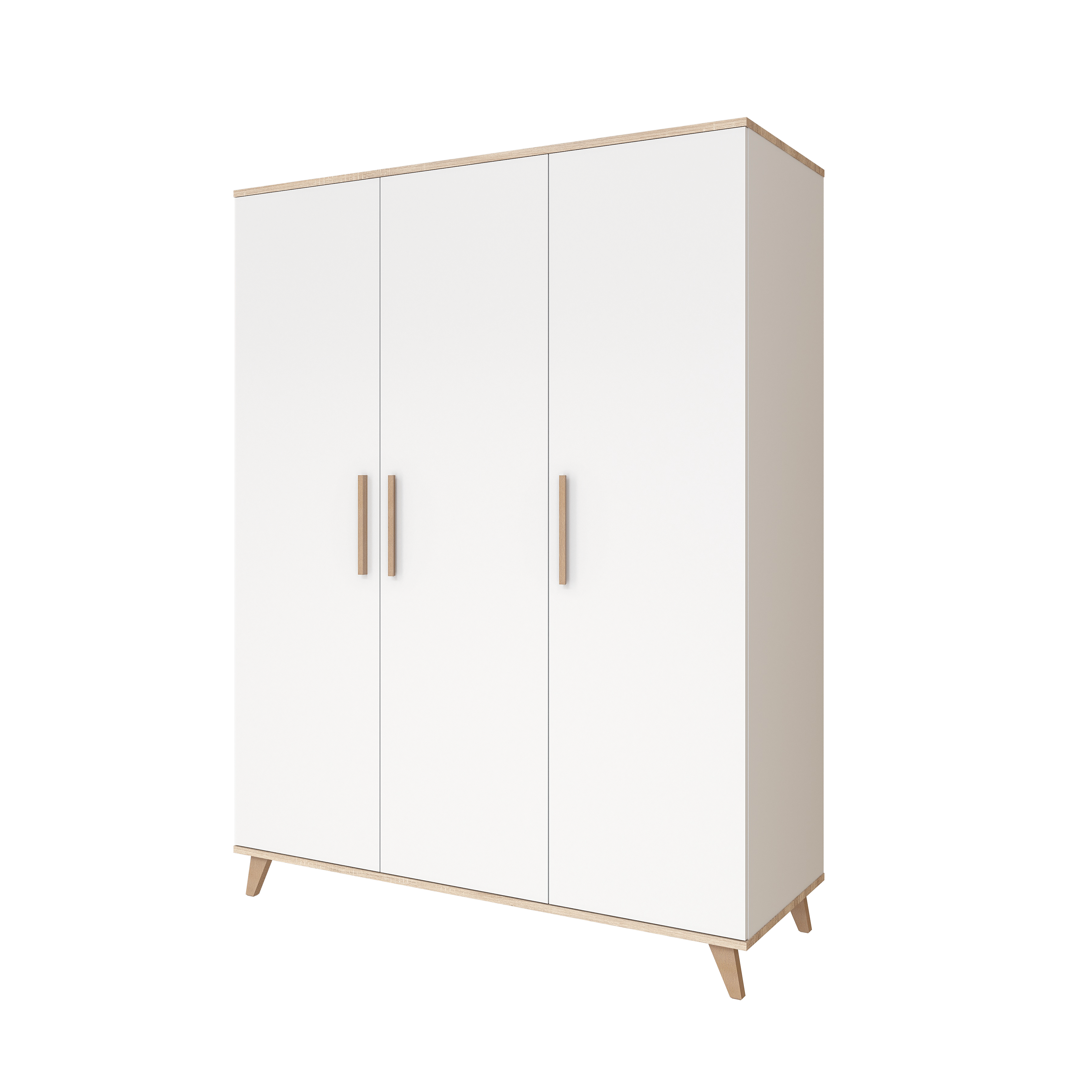 The doors, equipped with high-quality fittings, close quietly and safely thanks to the soft-close system, while the elongated handles provide a modern, clean look. The legged design and the white-and-oak-effect colour scheme make the Wardrobe not only stylish but also easy to combine with other pieces of the FLIP White & Oak furniture collection. With its durable construction, this wardrobe is guaranteed to accompany your child from the baby years through to young adulthood.