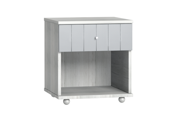 An additional piece of furniture that completes a youth room. It has a drawer and an open shelf. It rolls on wheels, so it can be easily placed anywhere.
