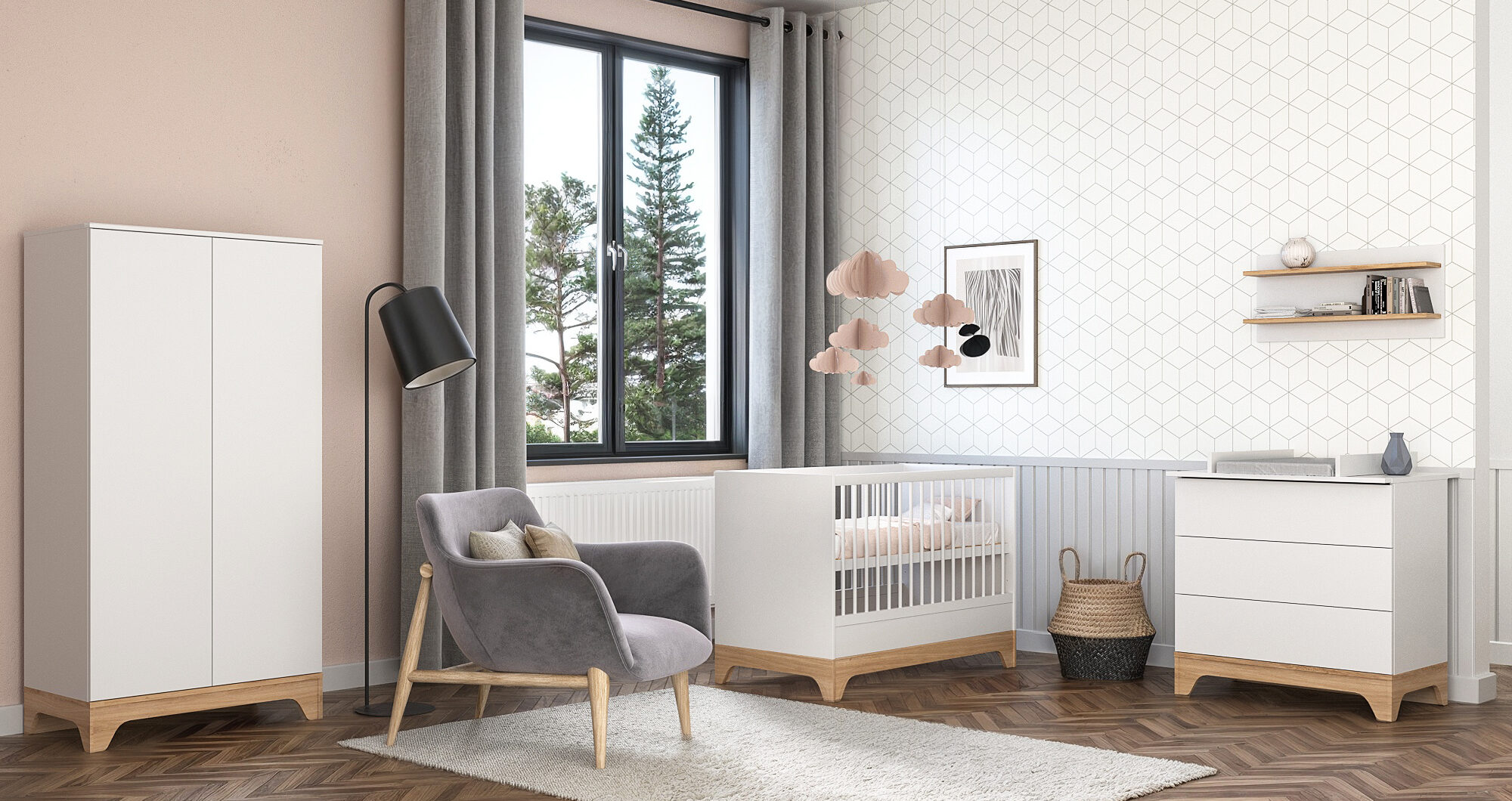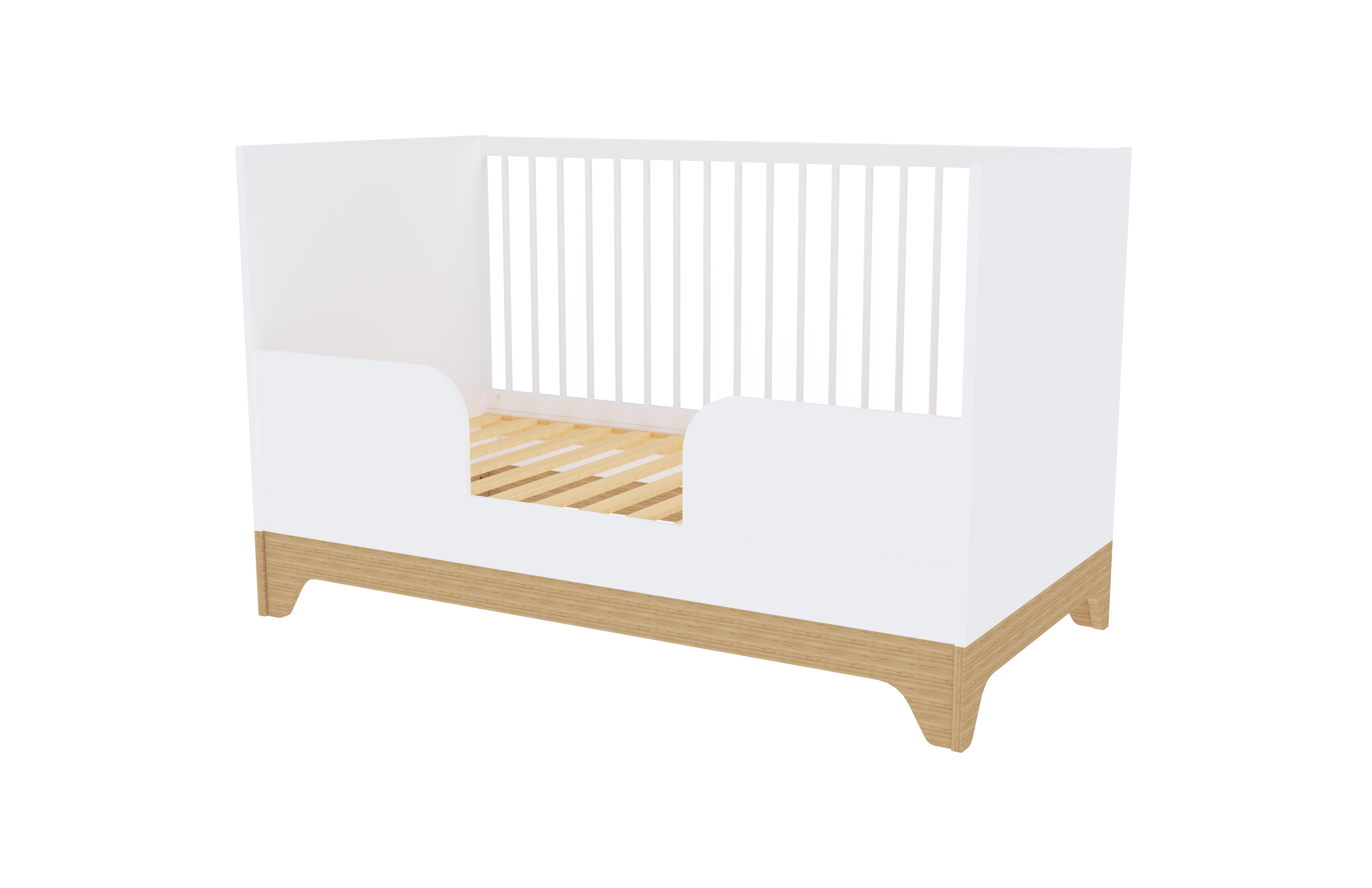 The Lumina White 140 cot features an adjustable sleeping base and can be transformed into a junior bed, providing a comfortable sleeping space from the very first days through to early childhood. Its sturdy structure and premium design offer a long-term solution for your child.