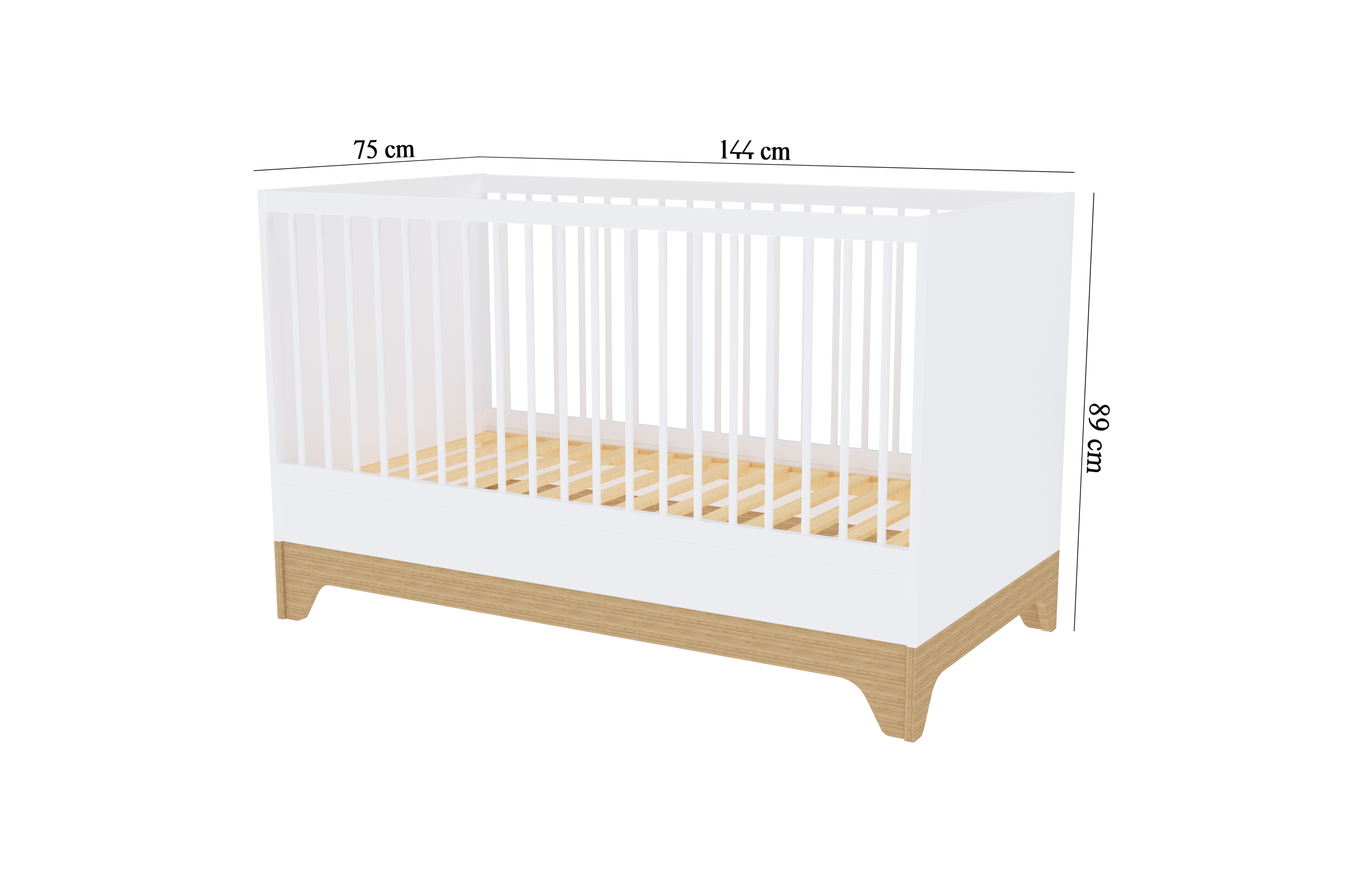 - Adjustable sleeping surface with 3 height positions, allowing the bed to adapt to your baby’s growth.