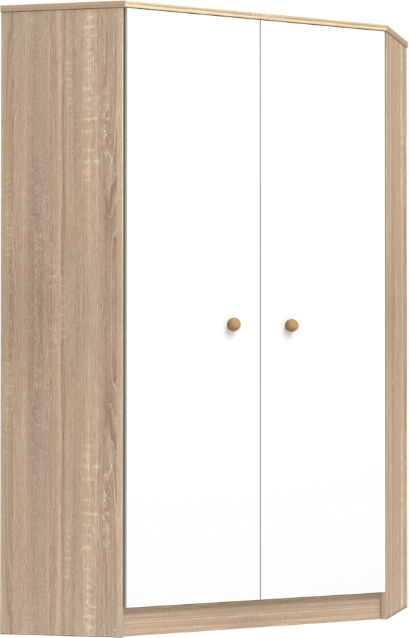Would you like everything in the nursery to have its place without compromising on an attractive look? Then choose our corner wardrobe, which impresses not only with its generous size but also with its timeless, classic design. The combination of Sonoma oak and ice white laminated boards adds warmth to the atmosphere of the nursery, creating perfect harmony with any interior.