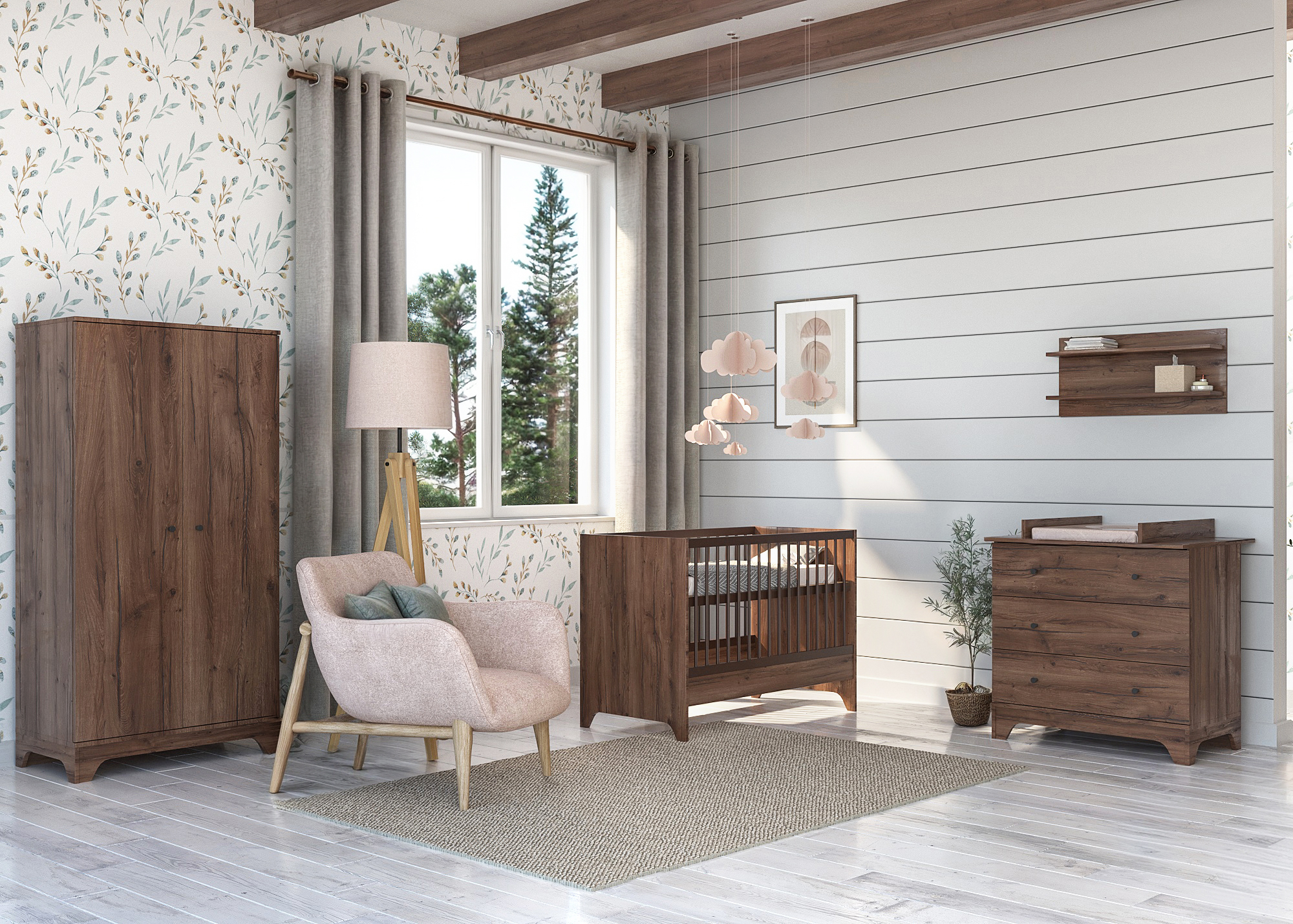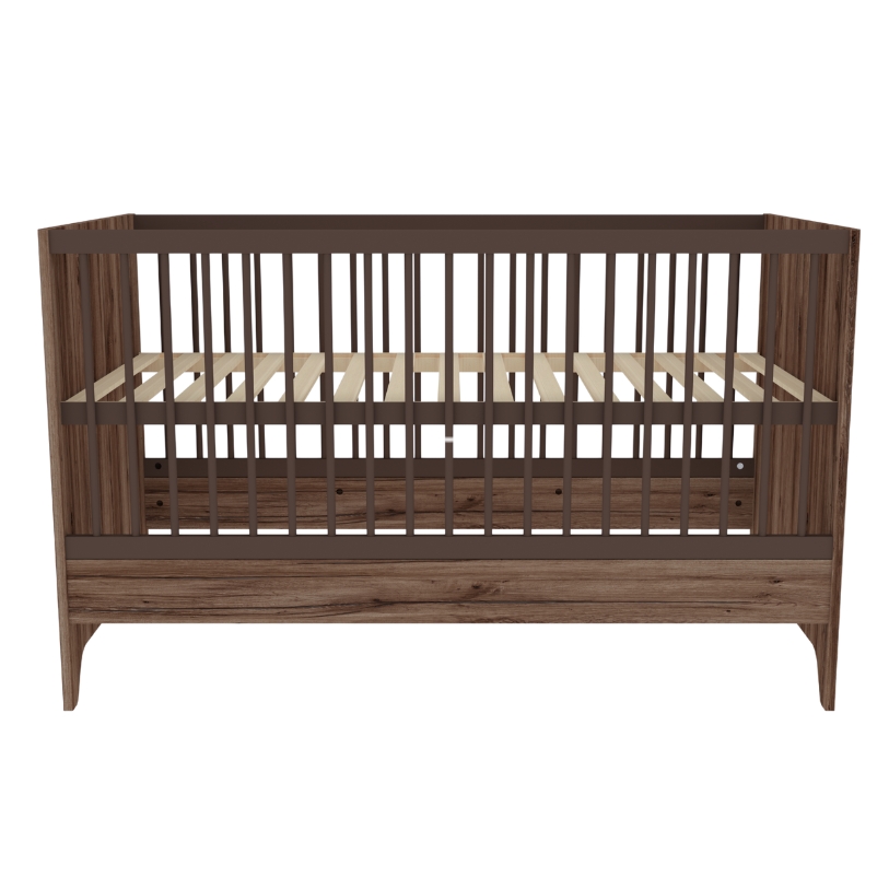 The Nest Walnut 140 cot is not only aesthetically pleasing but also highly practical: its sturdy structure and three-position adjustable sleeping surface (28,3, cm, 43,3 cm, 58,3 cm) and can be converted into a junior bed, providing a comfortable sleeping place from the very first days through to early childhood. Its stable structure and premium design offer a long-term solution for your child.