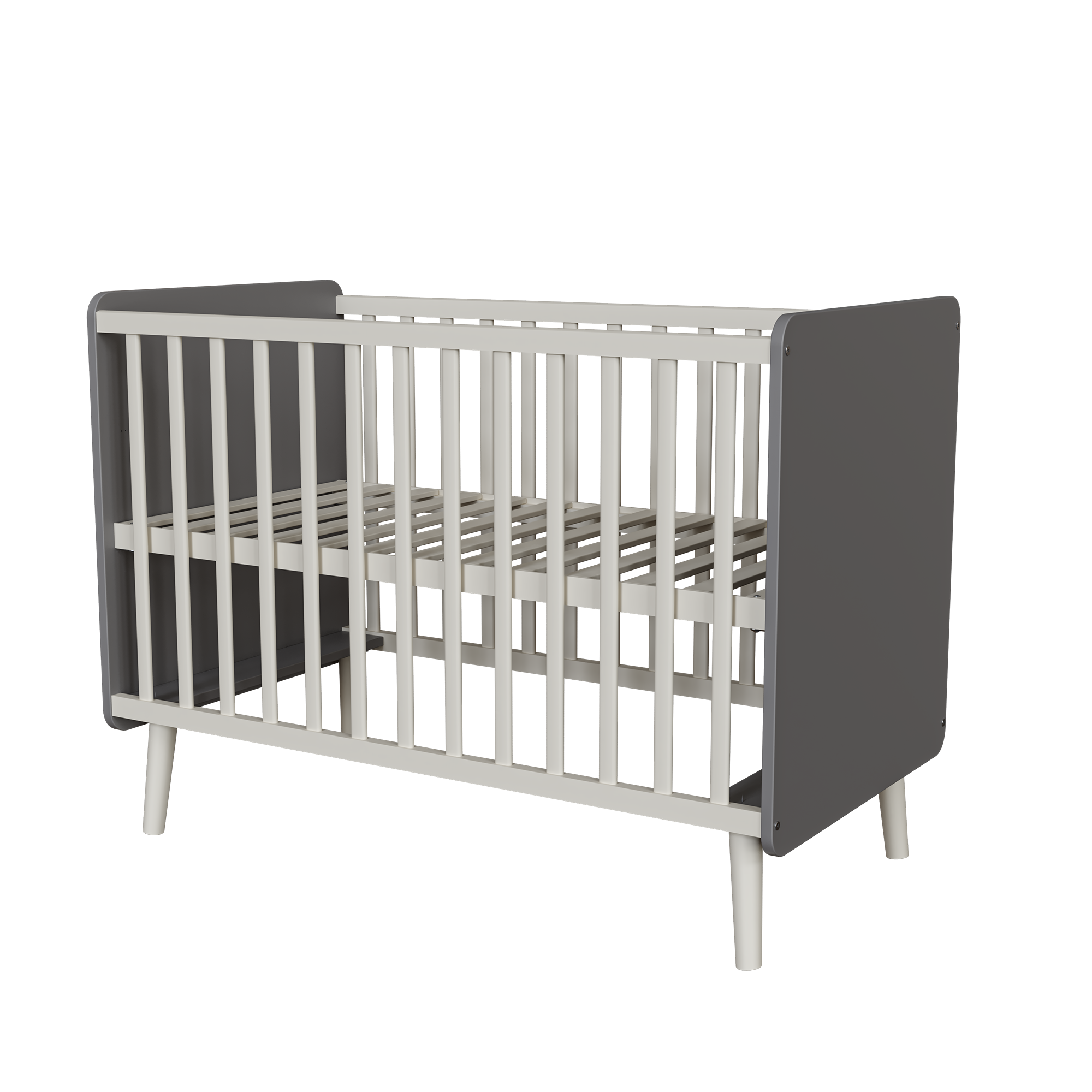 - Design: The side grille is of the lath type and is made of beech wood. One of the side rails has 3 removable slats, so that the little ones can walk in and out freely when they are independent.