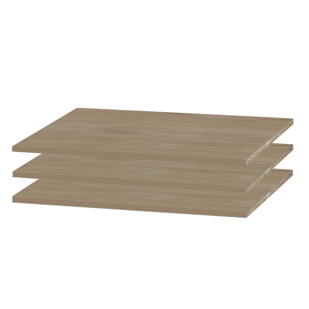 Additional shelf set for the Wardrobe and Wardrobe XL. The set contains 3 shelves.