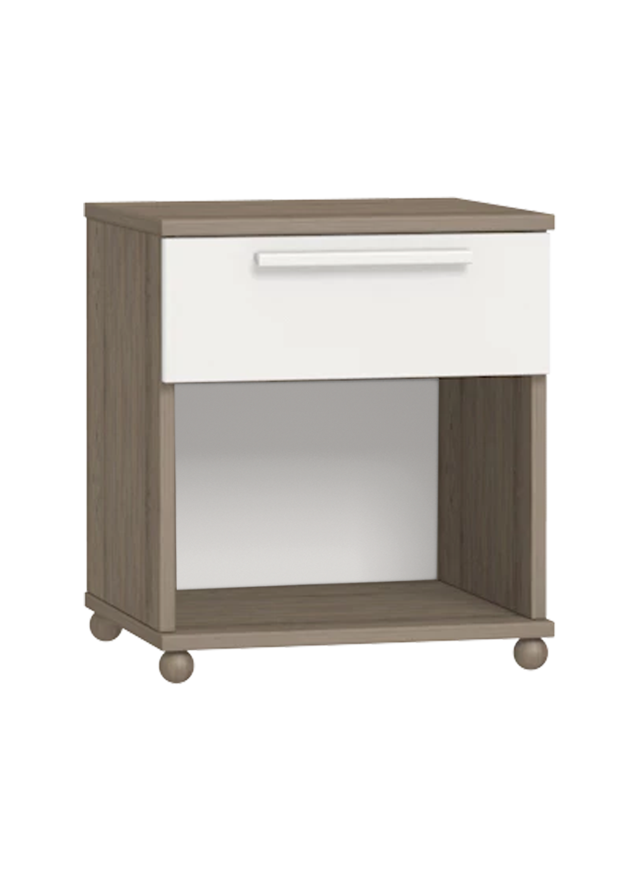 An additional piece of furniture that completes a youth room. It has a drawer and an open shelf. It rolls on wheels, so it can be easily placed anywhere.