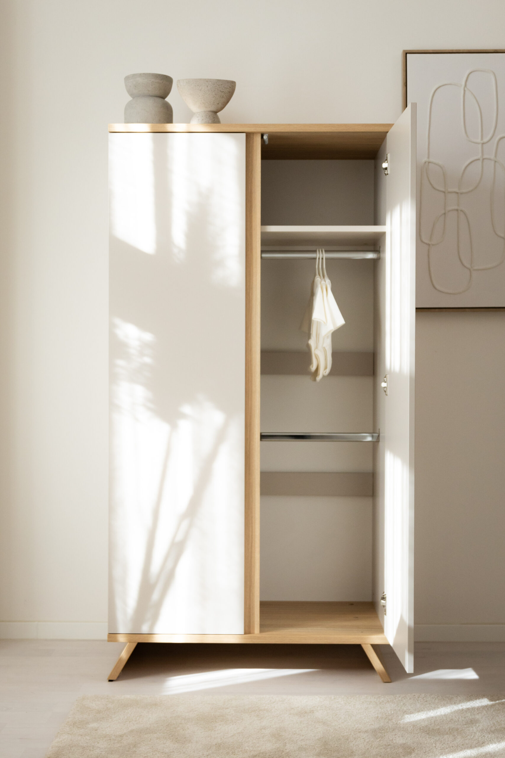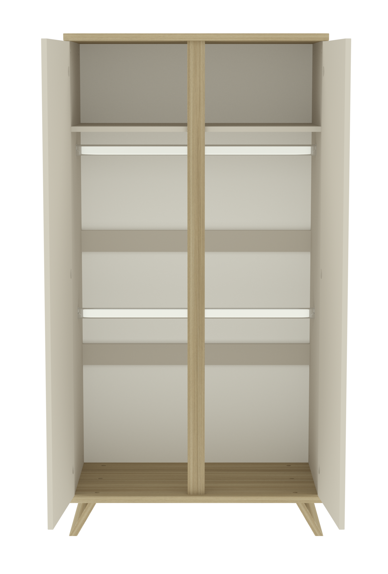 The Sienna Cashmere 2-door wardrobe is an essential storage piece in the nursery, designed to meet every need. Thanks to its practical interior with hanging rails, you can store your baby’s clothes in an organized and easily accessible way. In addition, the top shelf inside the wardrobe maximizes the use of its full size.