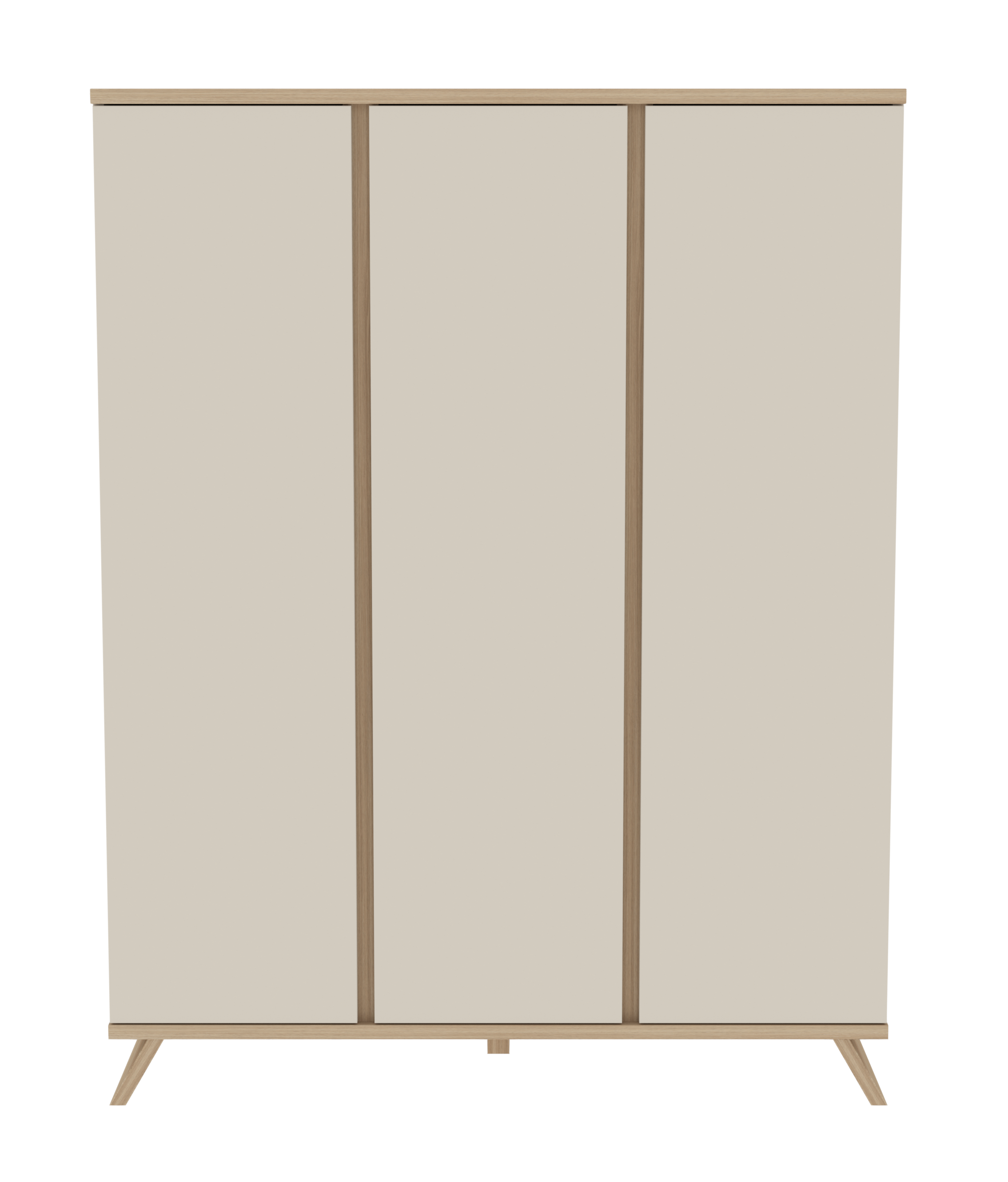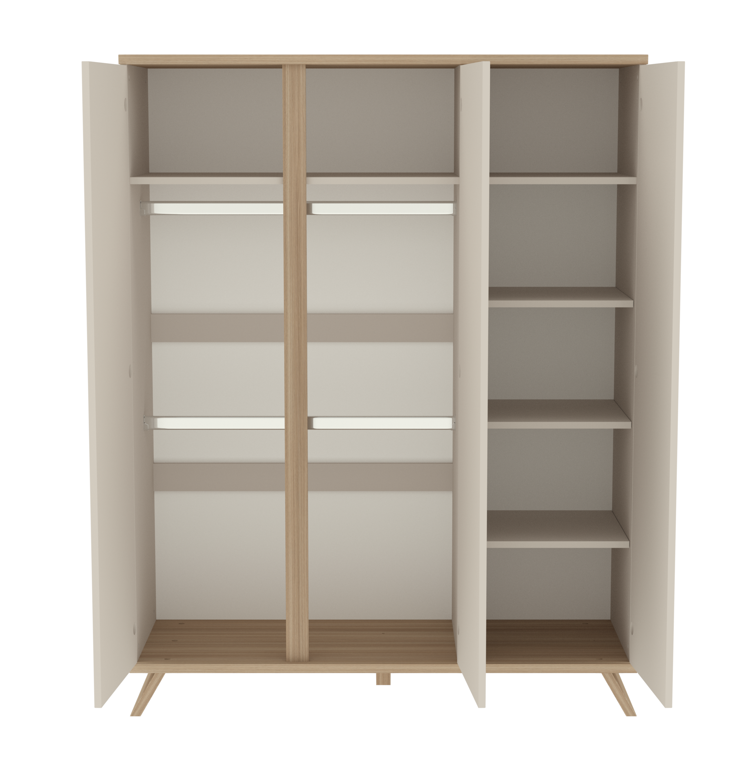 - The wardrobe stands on sturdy laminated board legs, giving it a unique and stylish appearance.