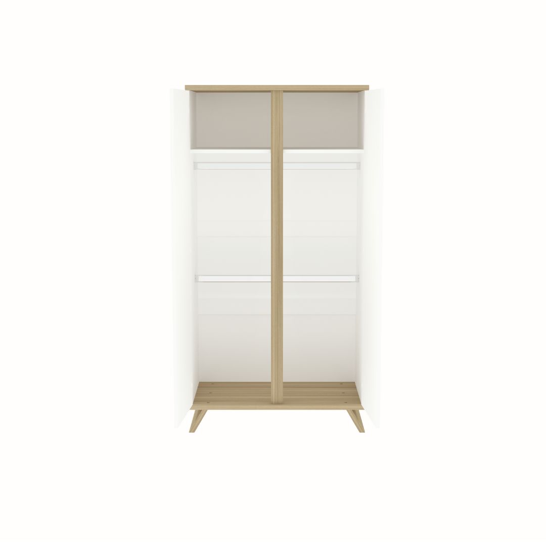 The Sienna White 2-door wardrobe is an essential storage piece for any nursery, designed to meet all your needs. Its practical interior with hanging rails allows you to store your baby’s clothes in an organized and easily accessible way, while the top shelf maximizes the use of the wardrobe’s full height. If desired, the wardrobe can also be expanded with an additional 3 shelves for even more storage space .