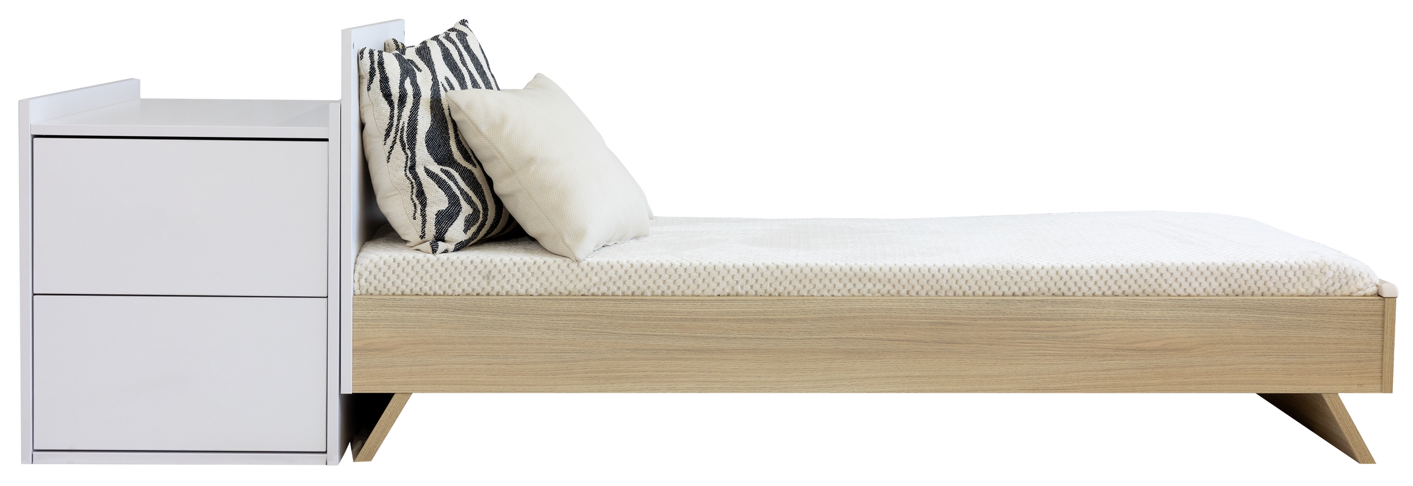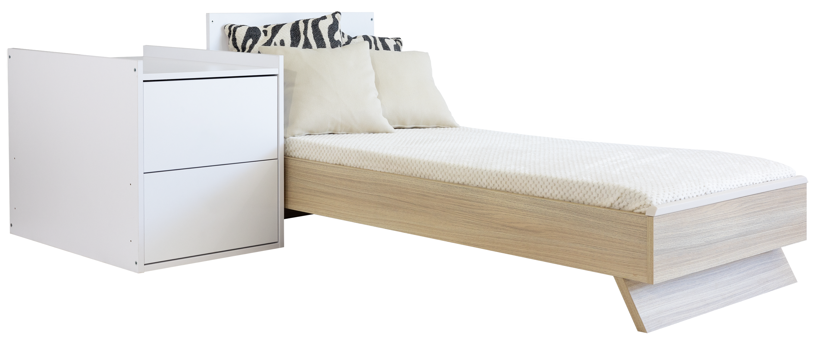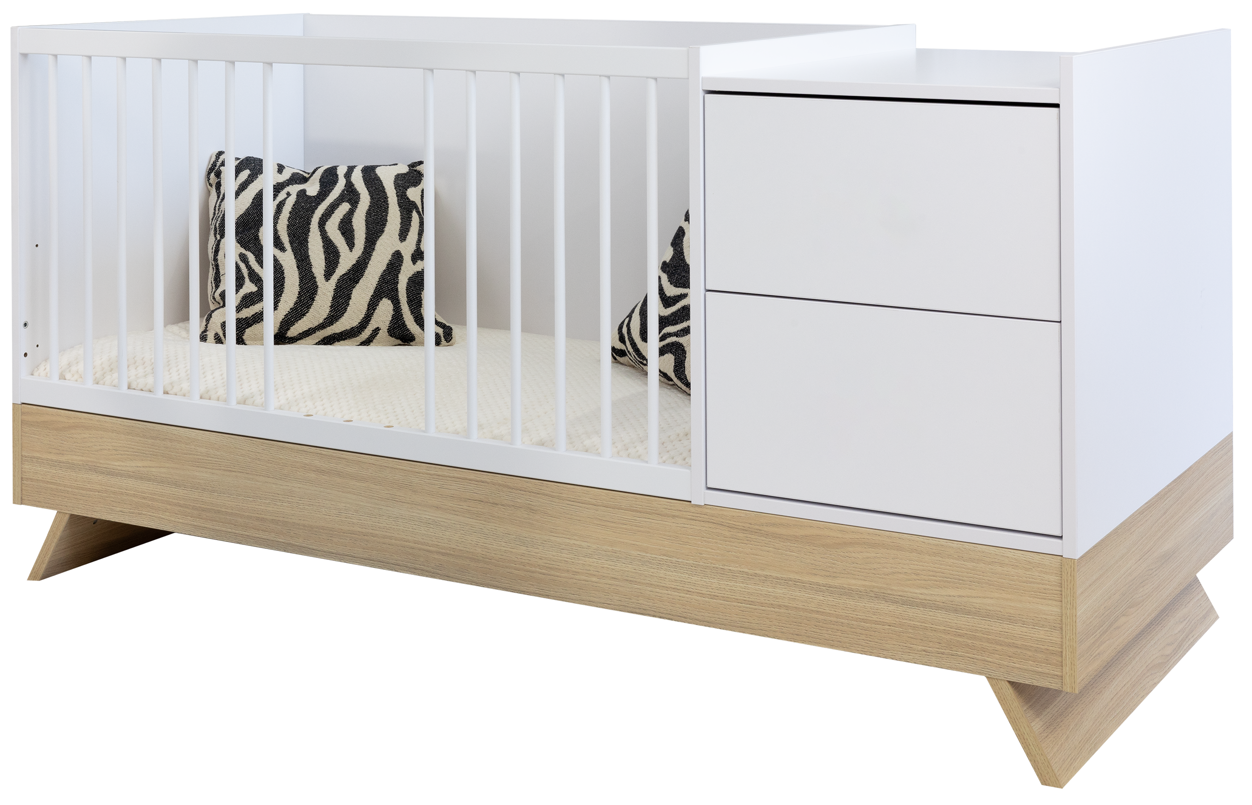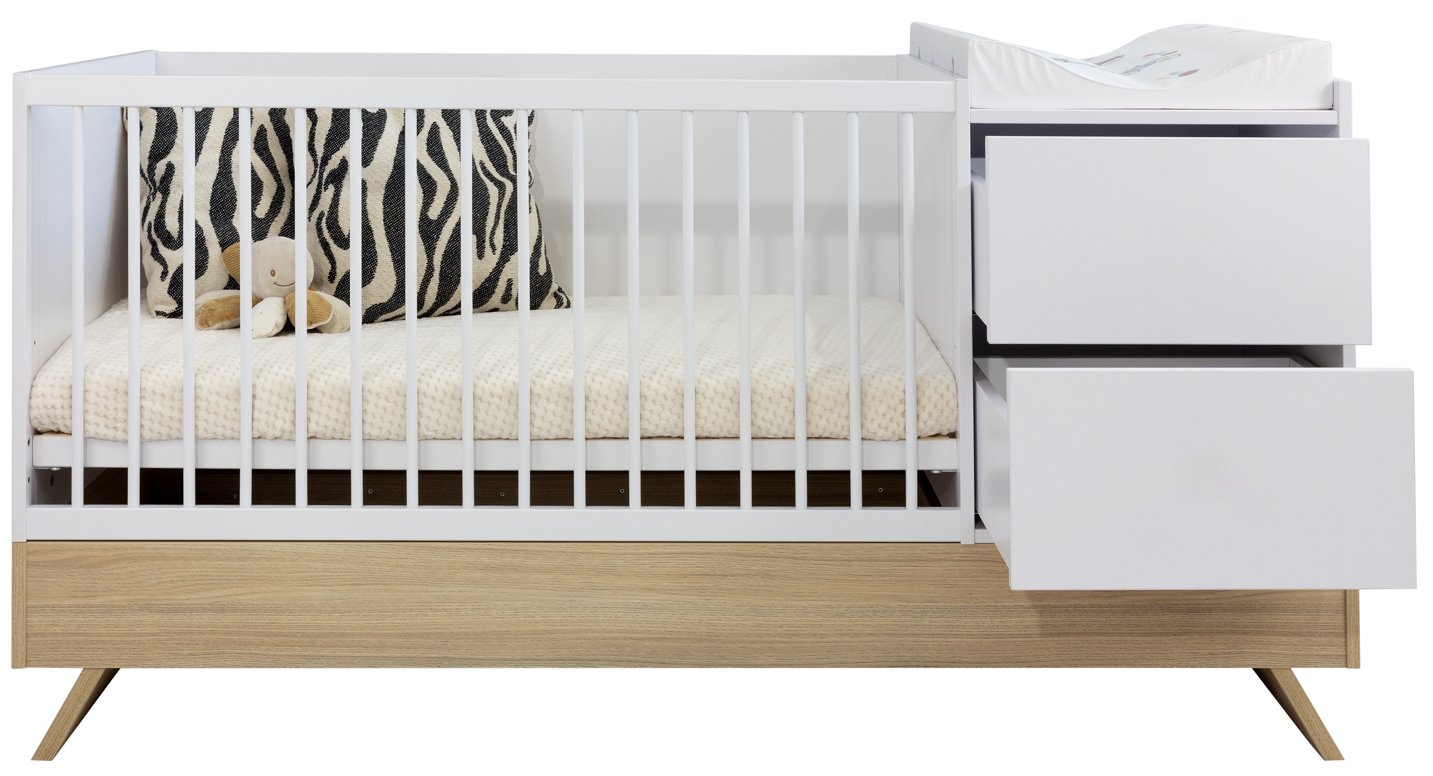 With its 3-in-1 function it's designed to grow with your child: it begins as a baby bed with dresser, then easily transforms into a junior bed and a practical storage unit —remaining a beloved part of your child’s room for many years to come.