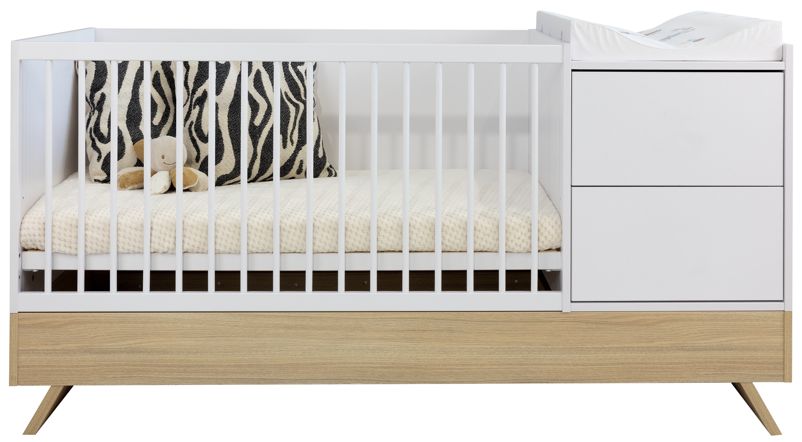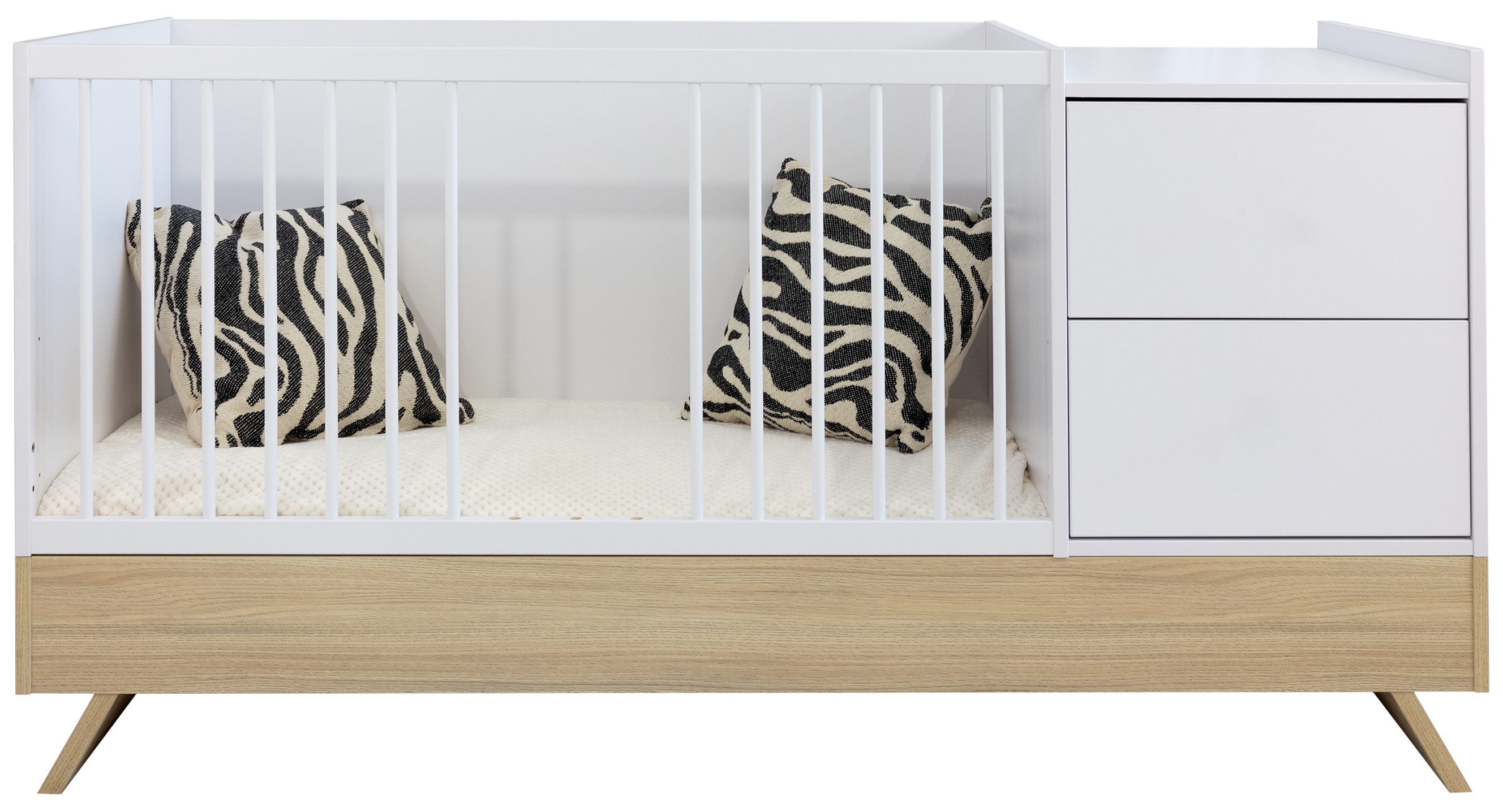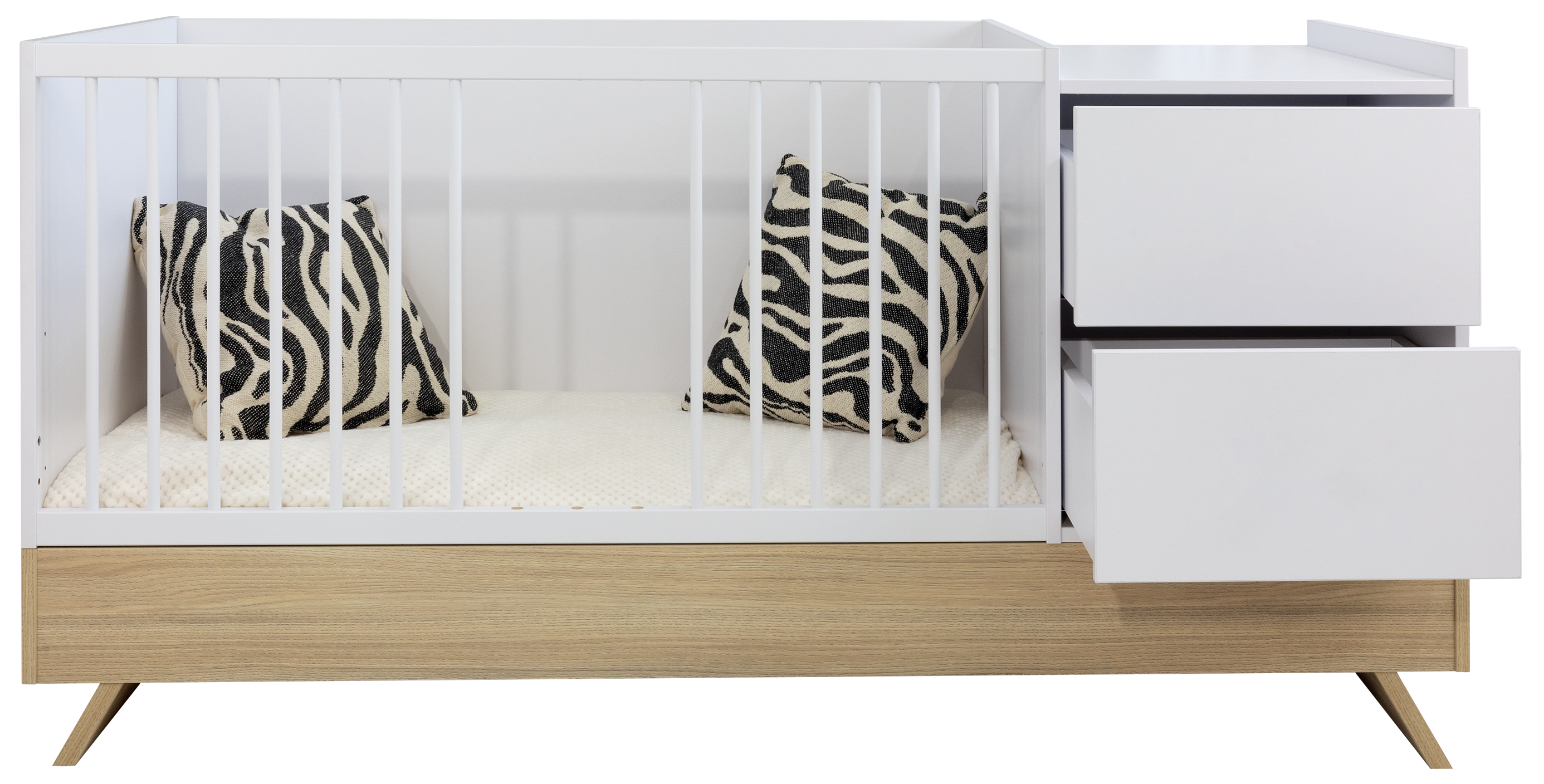 The newest member of the Sienna White collection impresses not only with its eye-catching design but also with its refined, well-thought-out functionality. Standing on elegant Dylan oak legs and paired with an ice-white panel, this multifunctional cot strikes the perfect balance between natural charm and modern style.