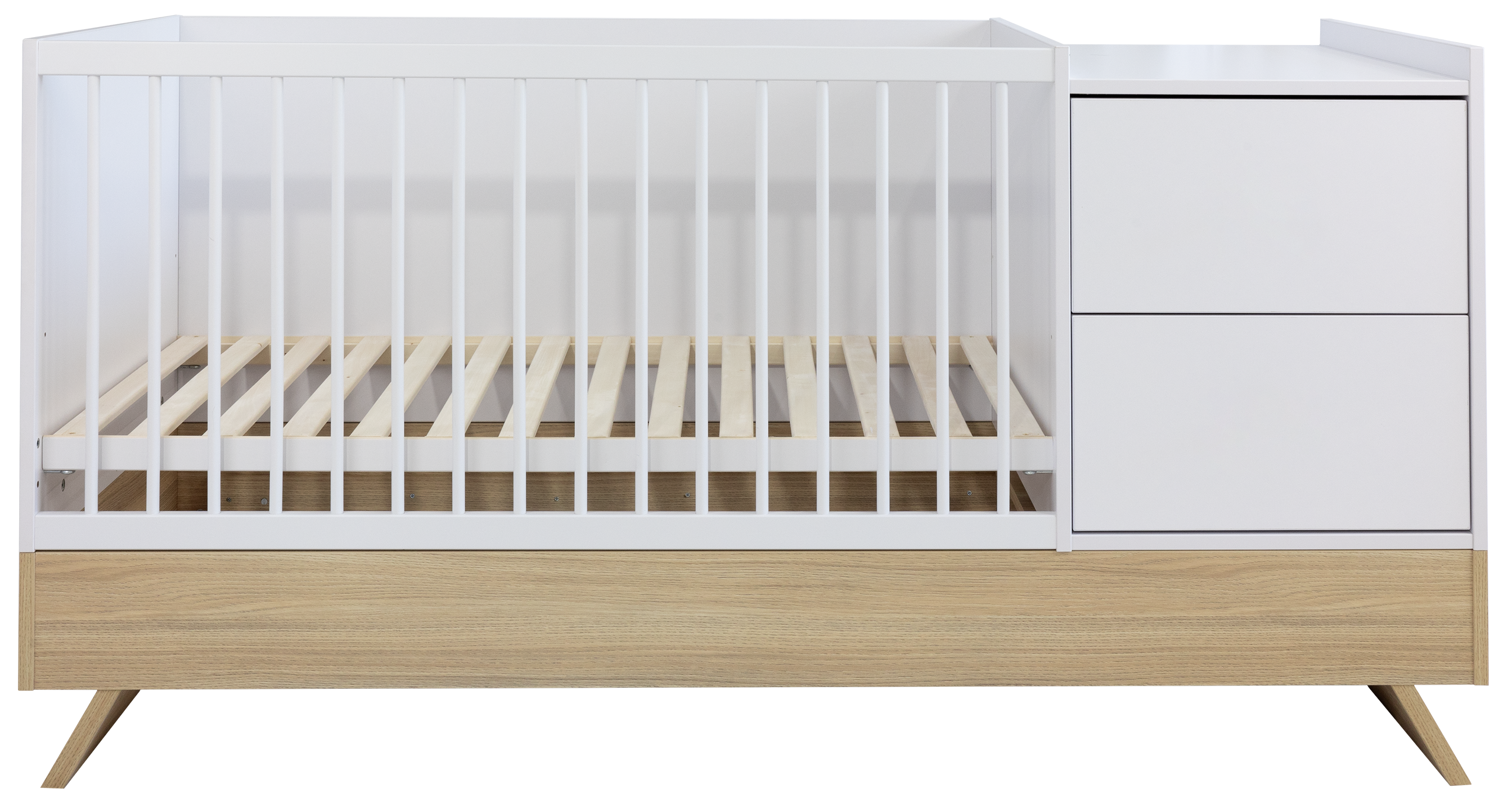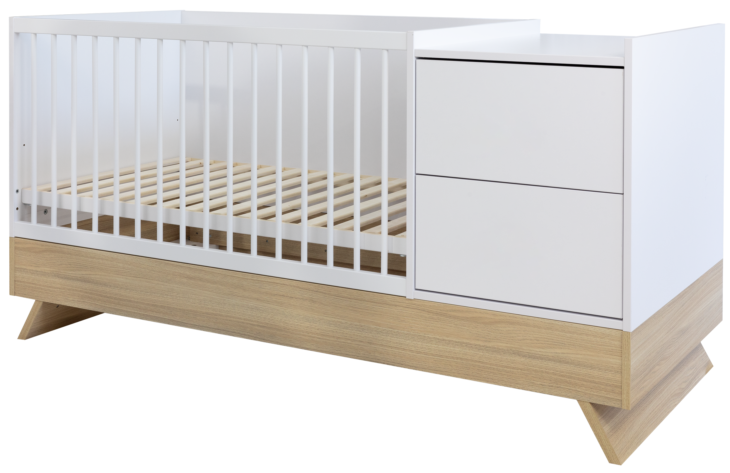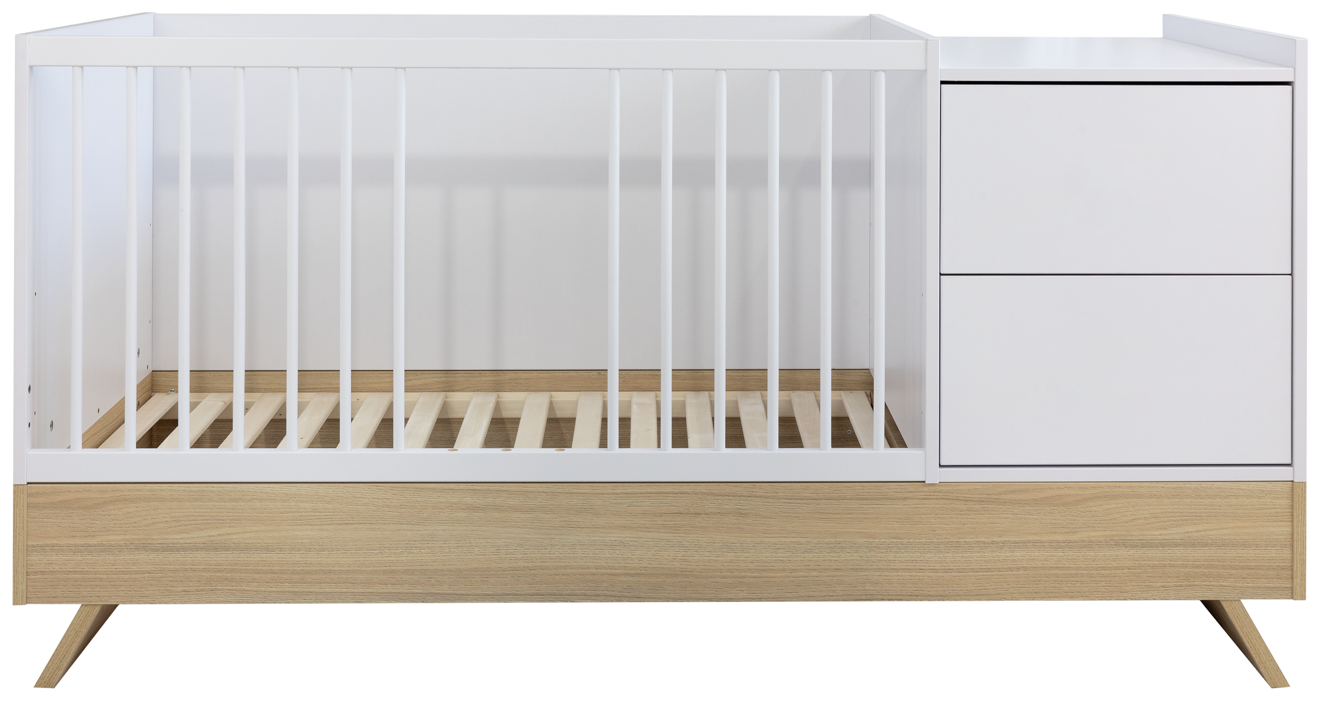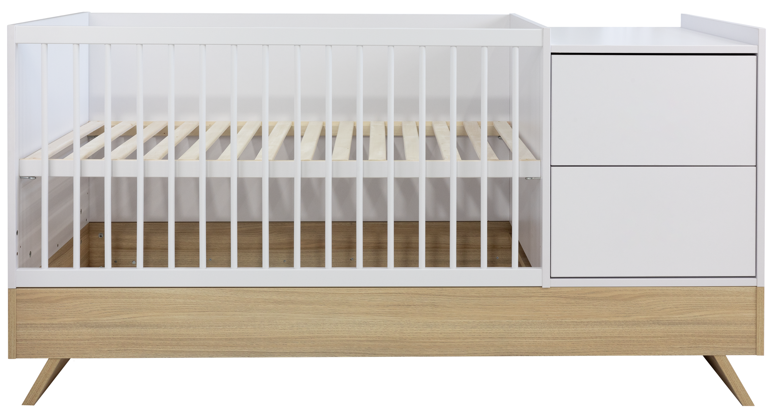 The newest member of the Sienna White collection impresses not only with its eye-catching design but also with its refined, well-thought-out functionality. Standing on elegant Dylan oak legs and paired with an ice-white panel, this multifunctional cot strikes the perfect balance between natural charm and modern style.