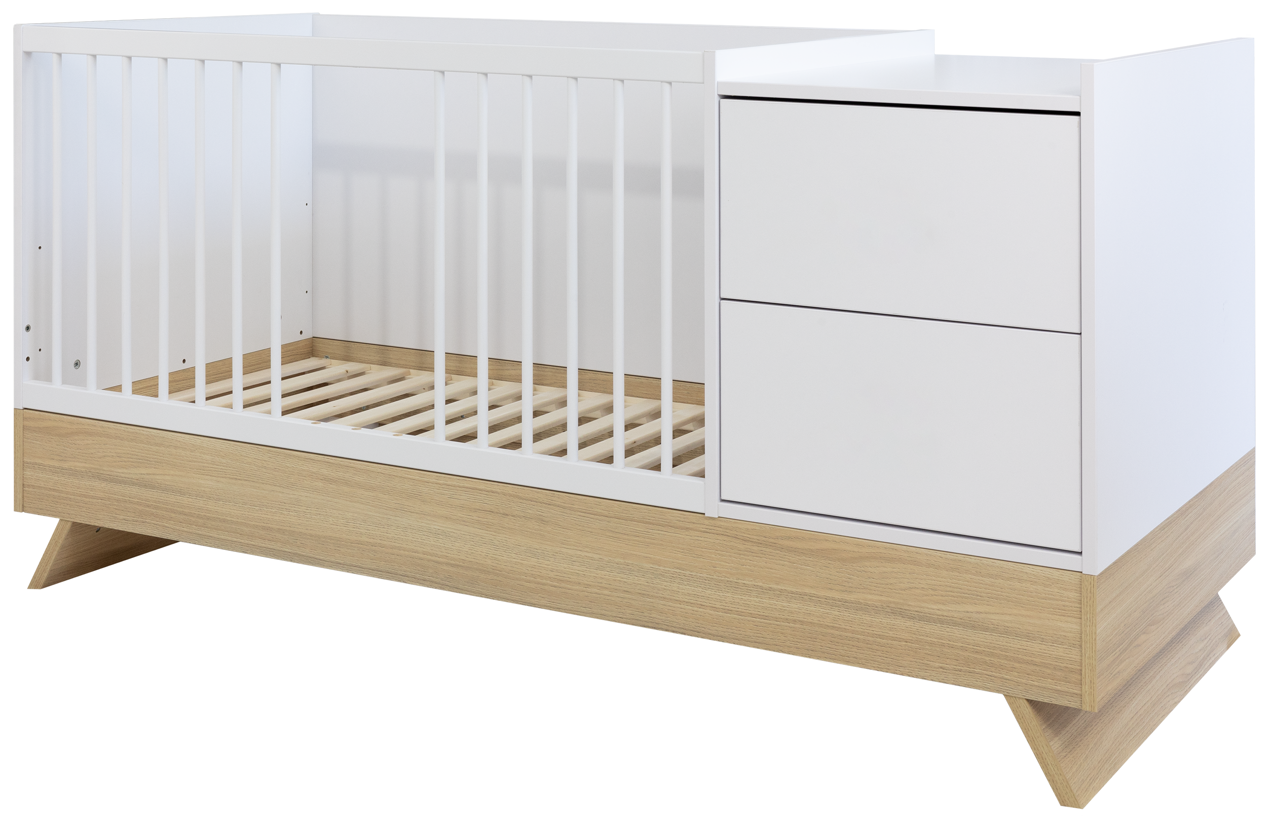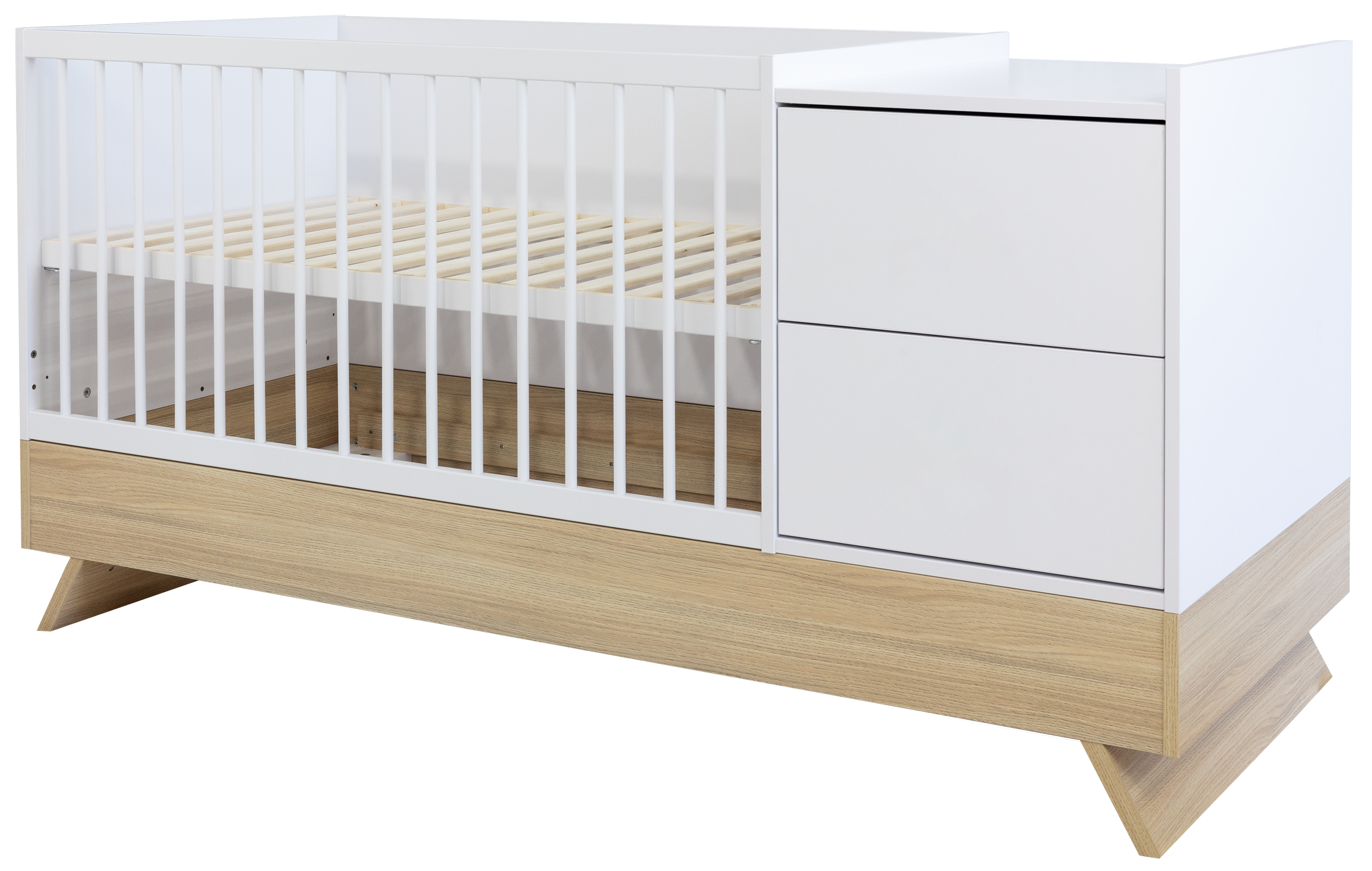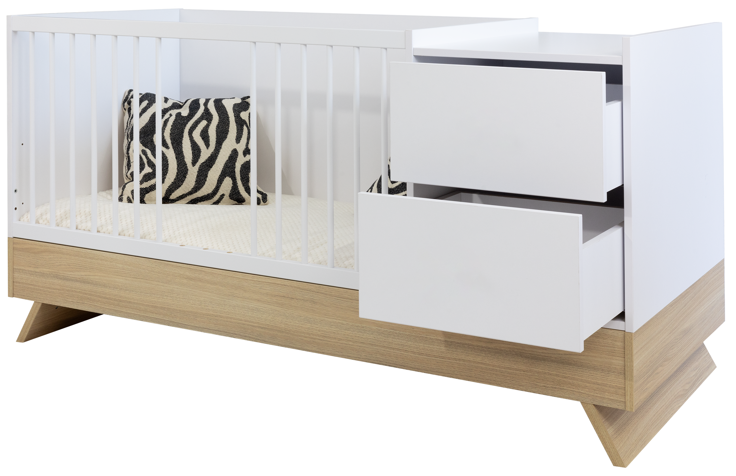 - It offers a 3-in-1 function, as it can be used as a cot with dresser, later converted into a junior bed and a practical storage unit – remaining a part of your child’s room for many years to come.