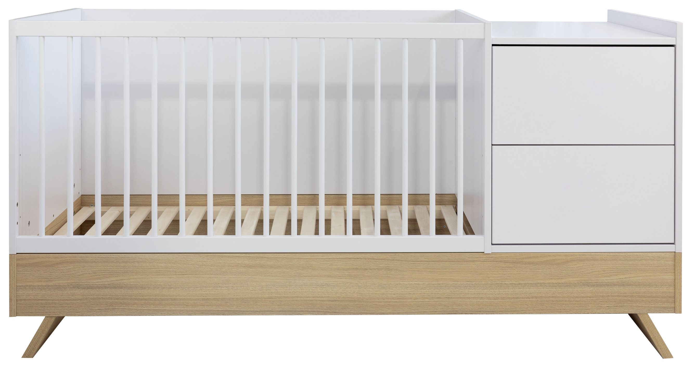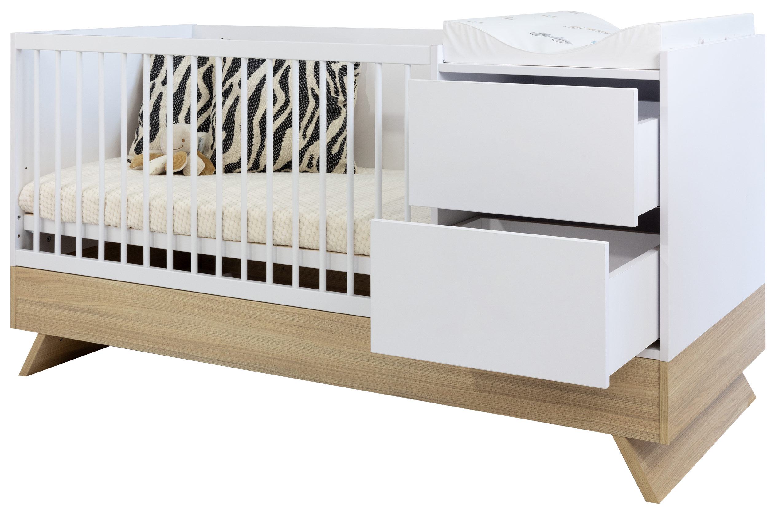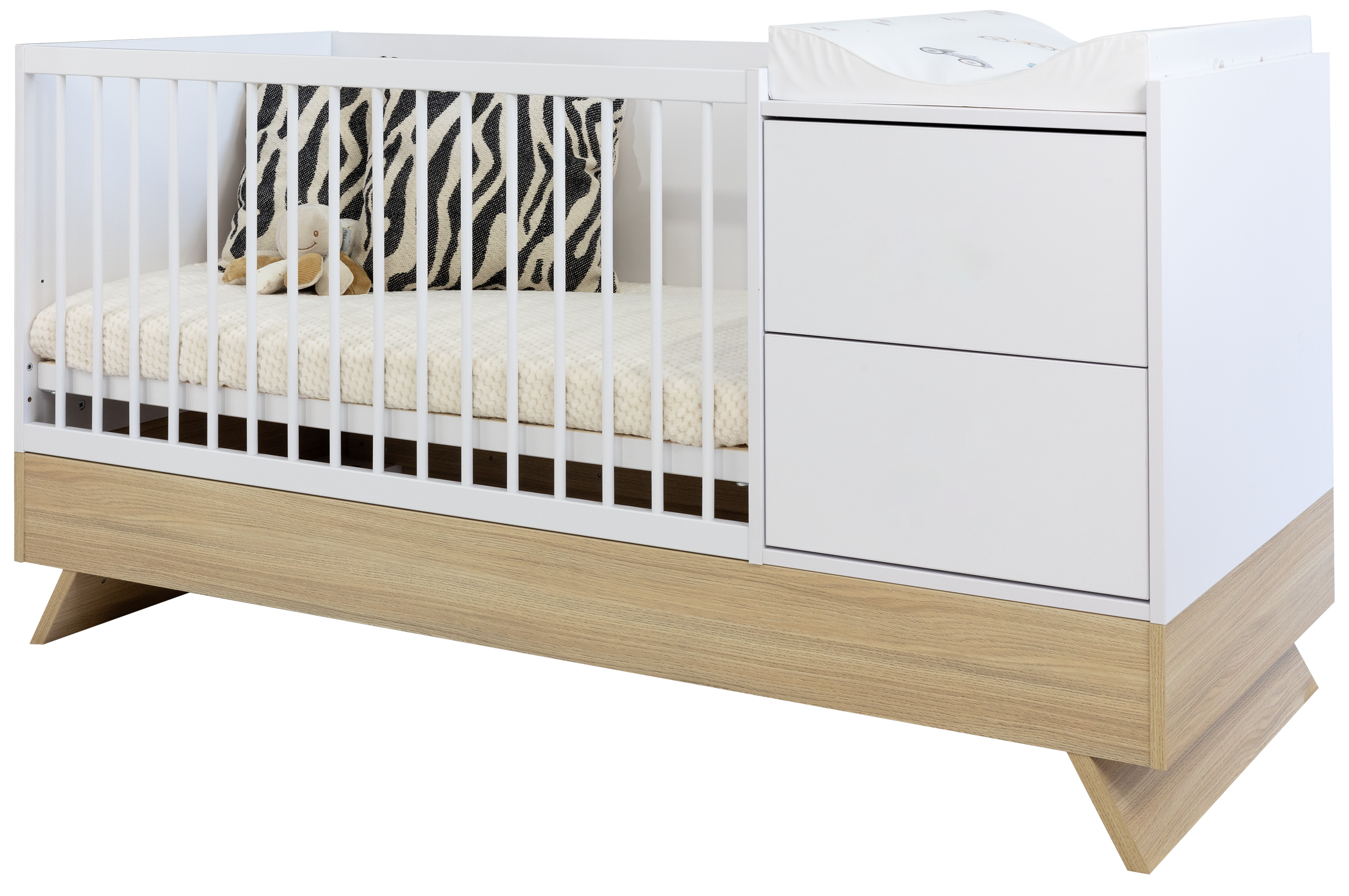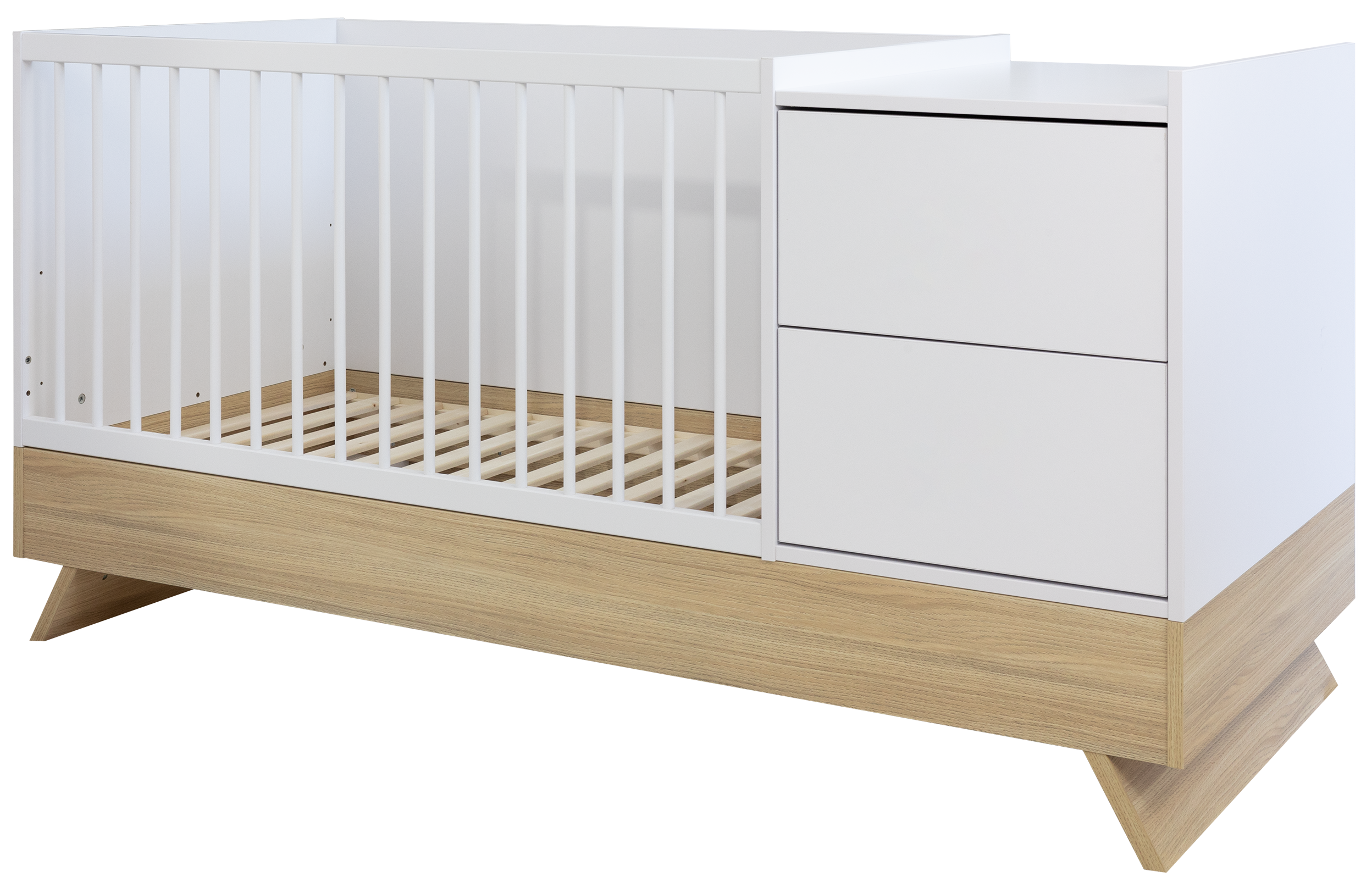 - It offers a 3-in-1 function, as it can be used as a cot with dresser, later converted into a junior bed and a practical storage unit – remaining a part of your child’s room for many years to come.