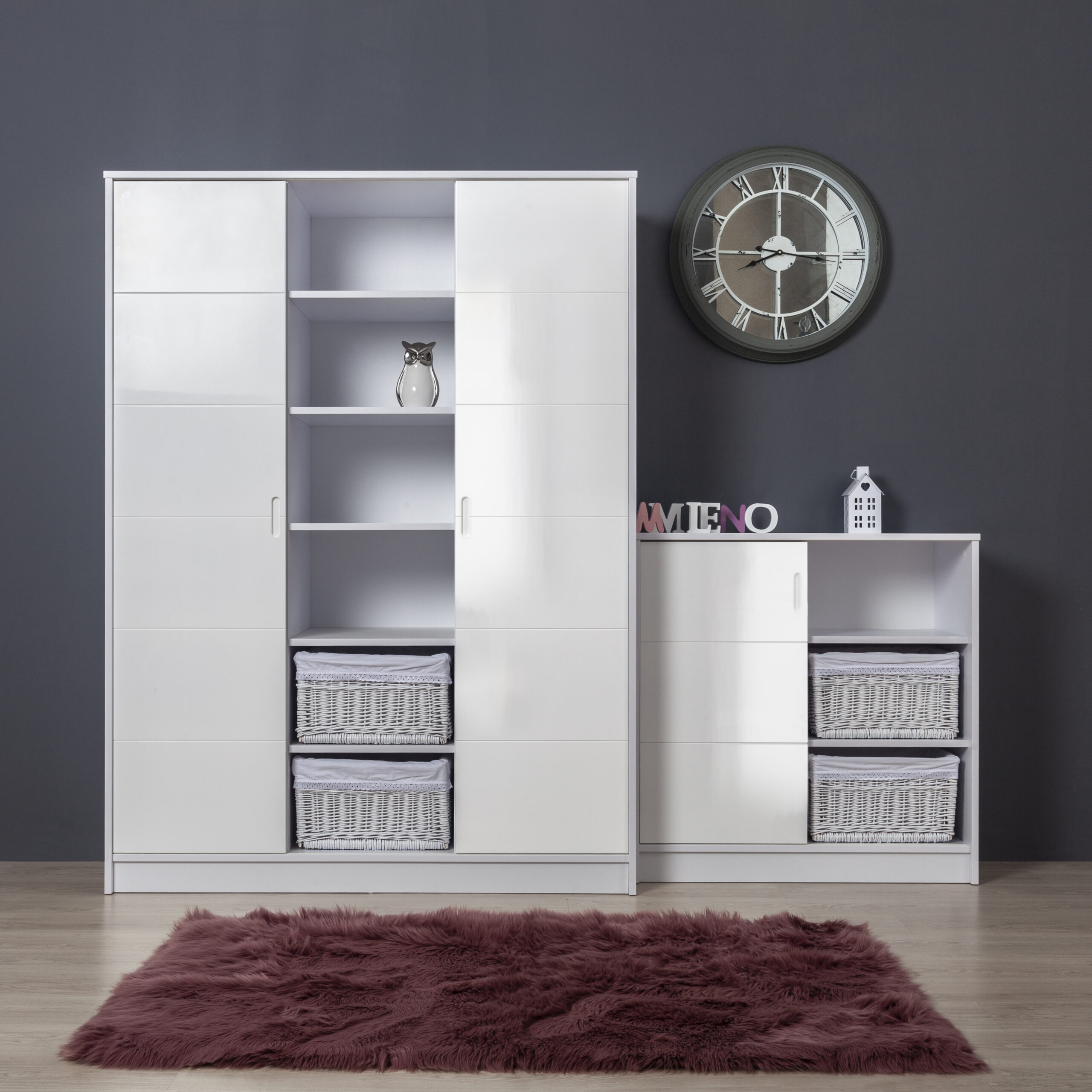 A babaszoba elengedhetetlen eleme. Úgy lett kialakítva, hogy viszonylag kis helyen is elférjen, mégis a lehető legnagyobb segítséget nyújtsa a friss szülőknek. Magassága, pakolófelületei, variálhatósága mind a szülők igényei alapján lettek kialakítva. Nem csak tárolóként funkcionál, hanem egy pelenkázó toldalék vásárlásával pelenkázó komódként használható a komód teteje. És ez még nem minden… A toldalékkal felszerelt komód mögötti üres részre tárolópolcokat lehet helyezni, amivel egy komplett kis szettet lehet összeállítani.