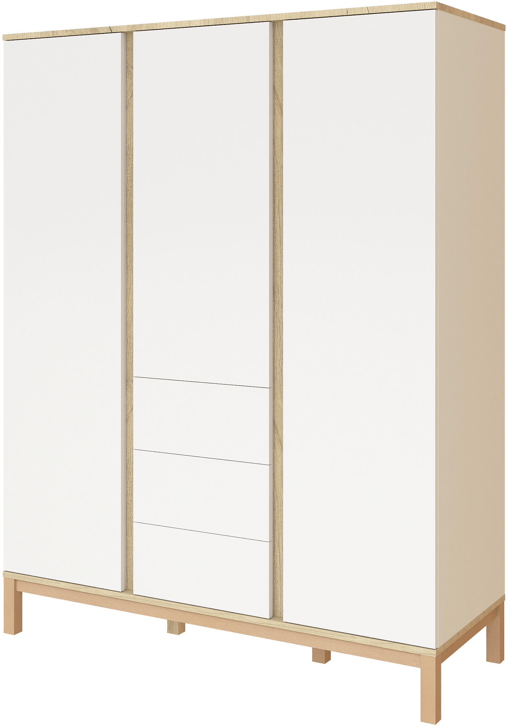 - Kivitel: A szekrény polcos, illetve akasztós kivitelben is összeszerelhető. A szekrény bal oldala 4 polcot, a középső rész 2 polcot és 3 fiókot, míg a szekrény jobb oldala 1 polcot és 2 akasztó rudat tartalmaz.