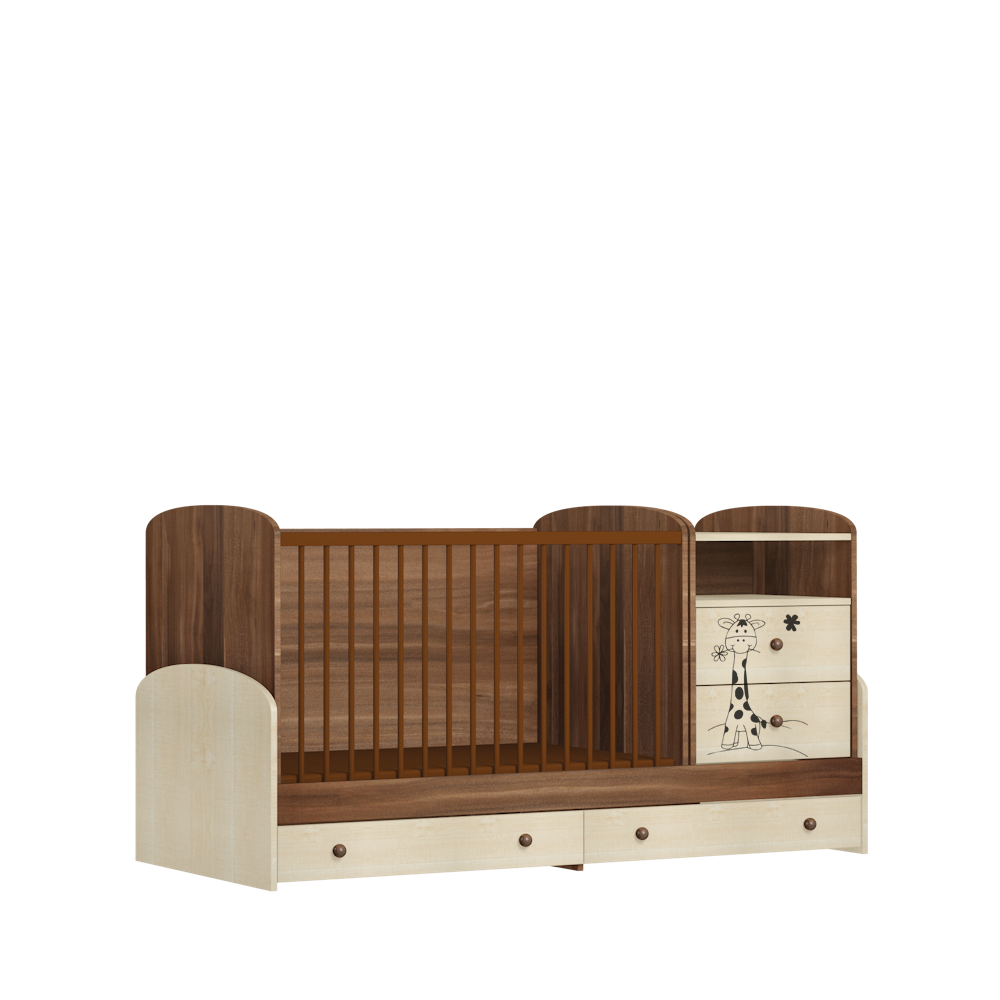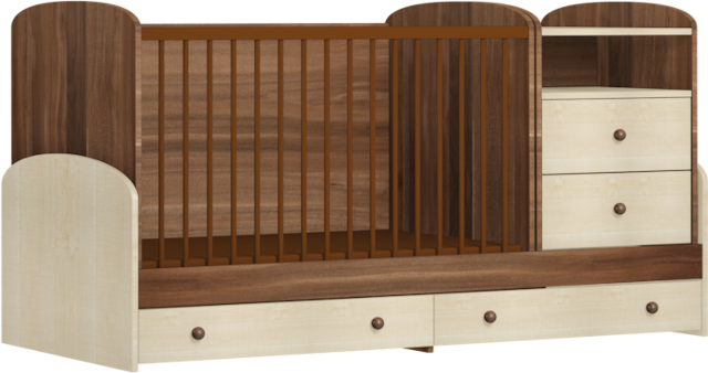 A legsokoldalúbb gyermekágyunk. Amellett, hogy a kezdeti időszakban babaágy és pelenkázó komód egyben, később még ifjúsági ággyá, valamint íróasztallá is alakítható.