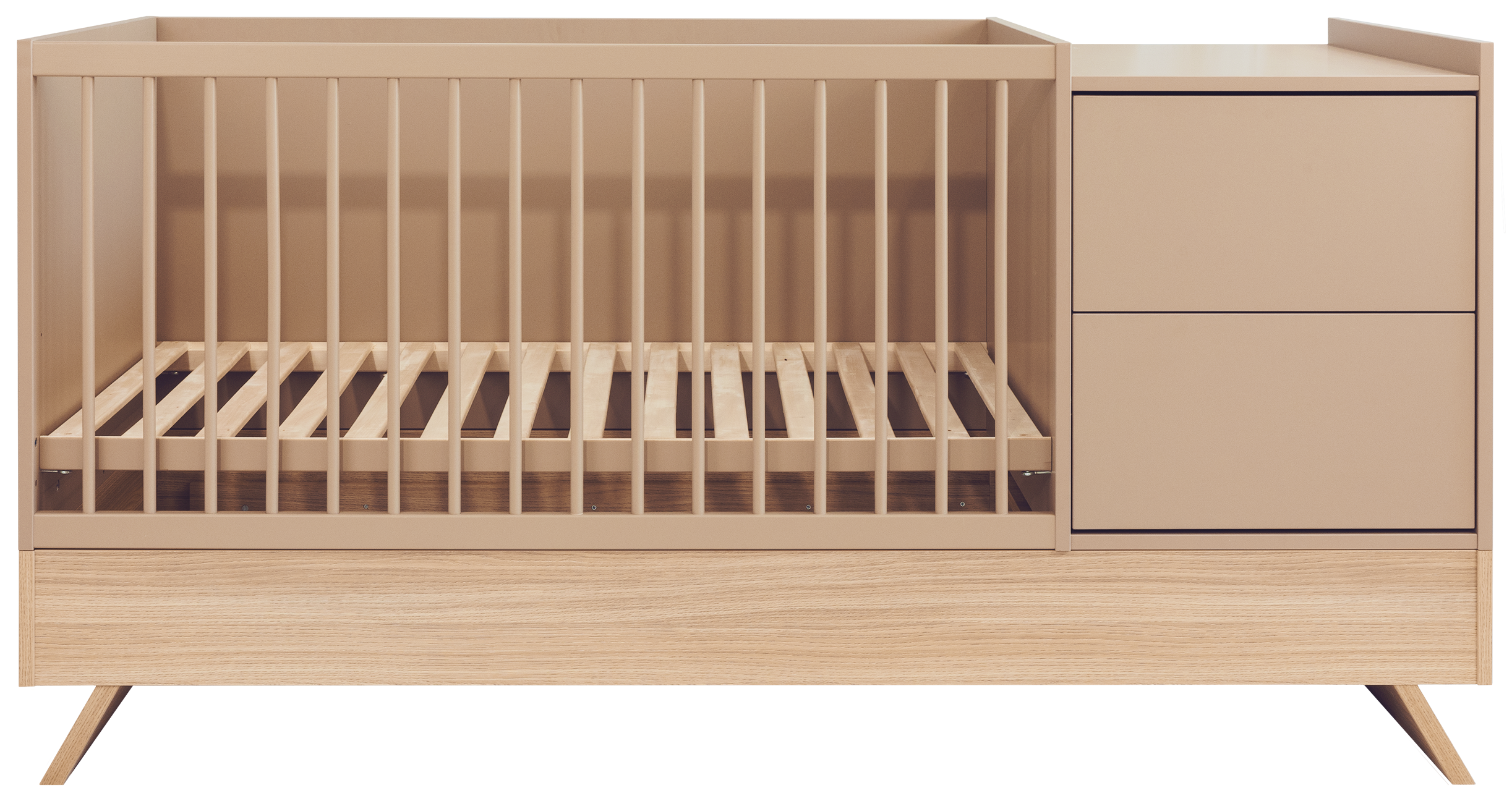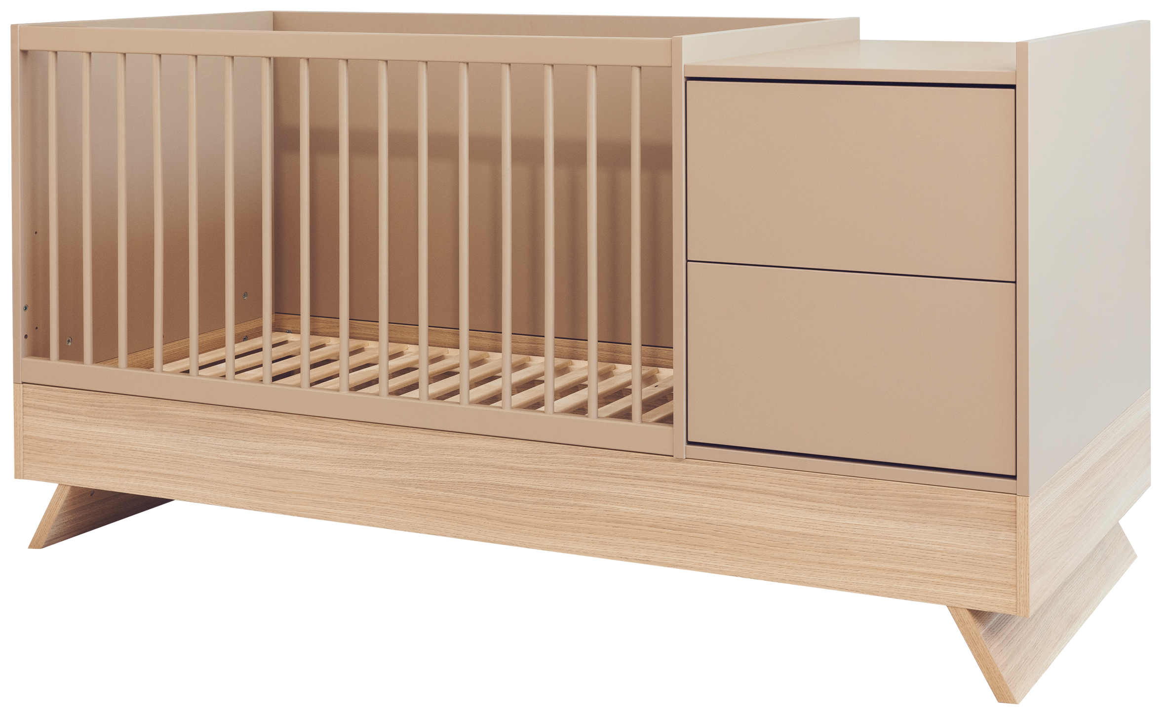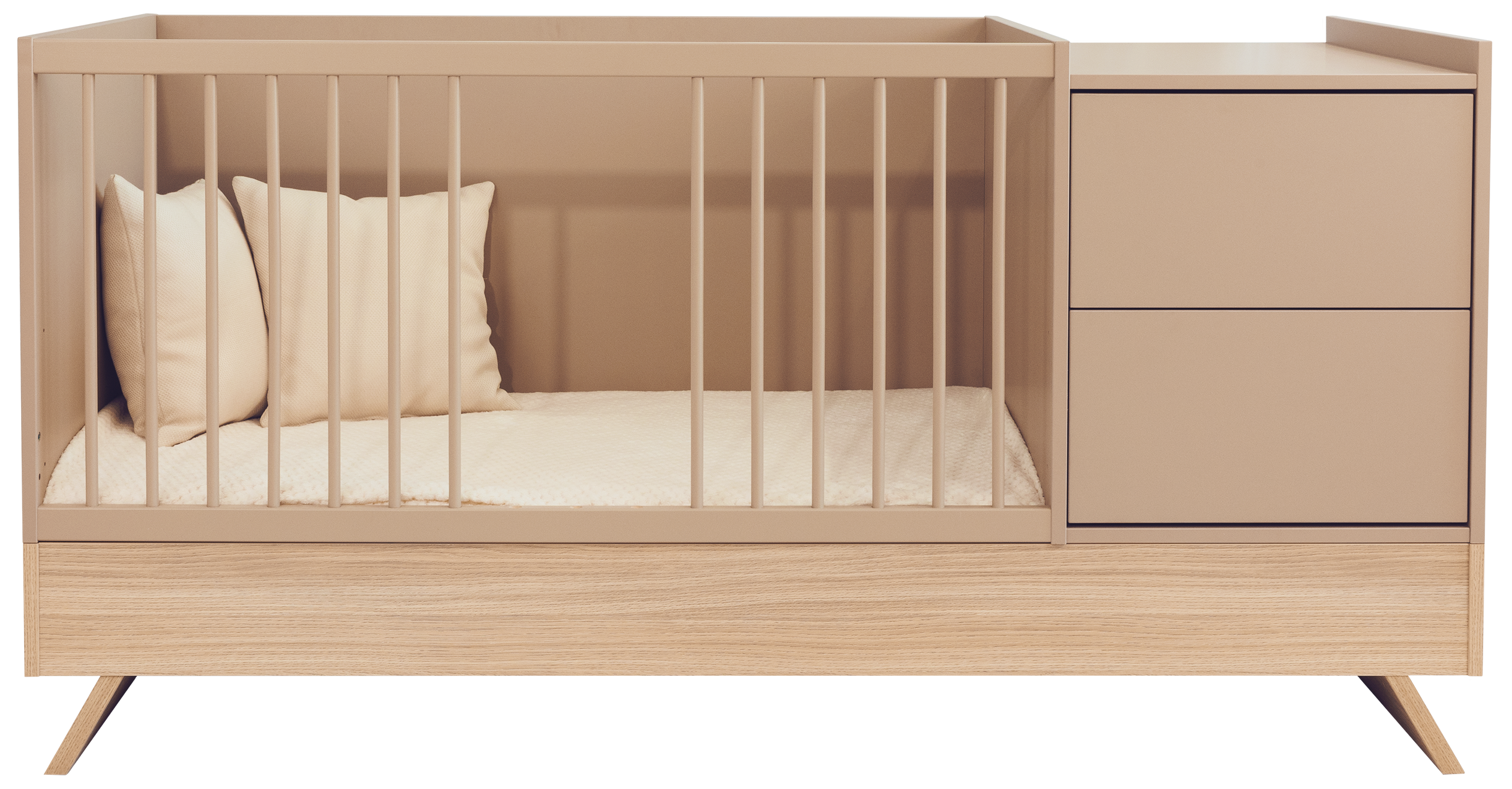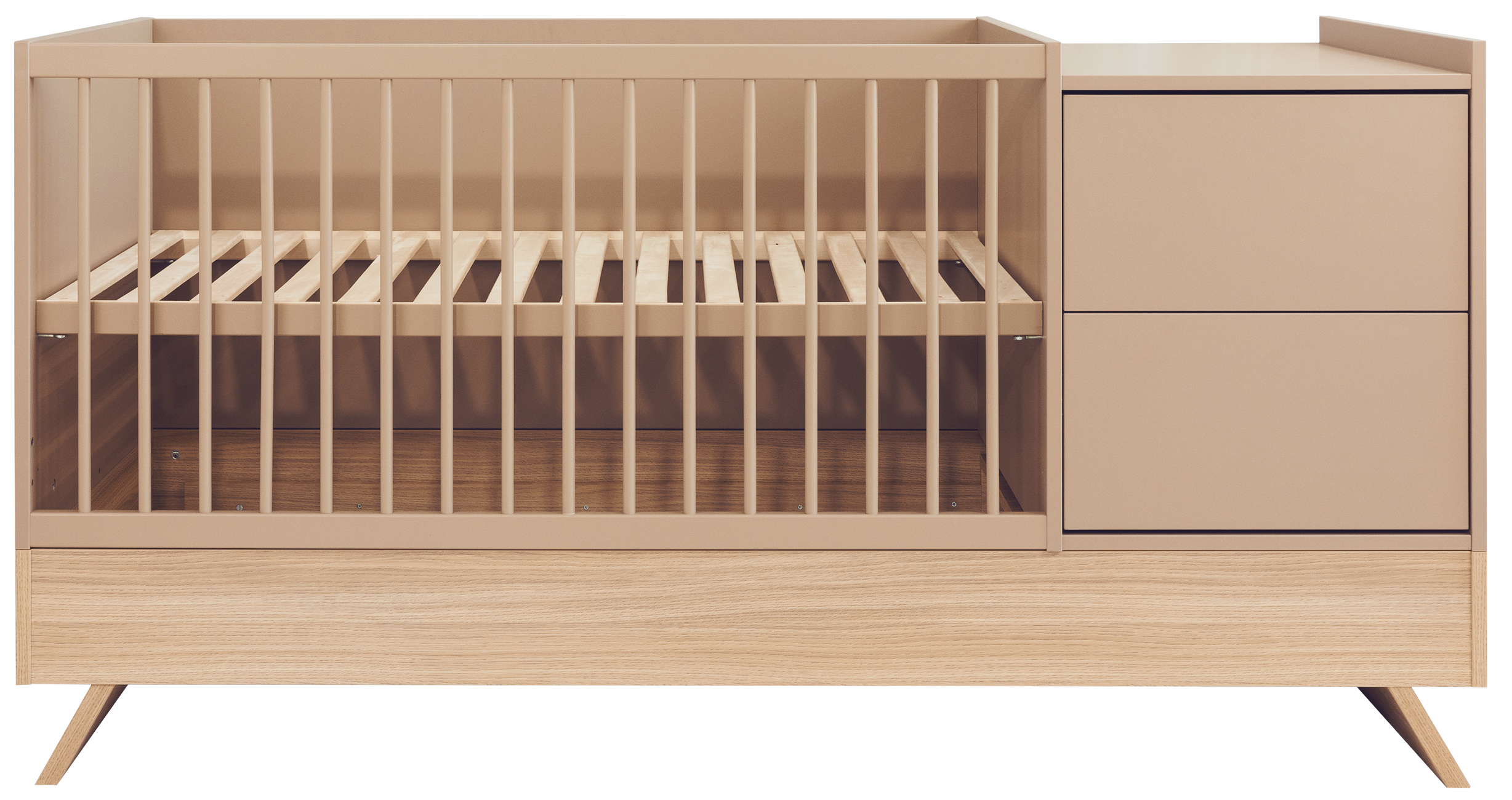 A Sienna Cappuccino bútorcsalád új tagja nem csupán szemet gyönyörködtető megjelenésével hódít, hanem kifinomult, átgondolt funkcióival is meggyőz. A dylan tölgy lábakon álló kombi babaágy elegáns cappuccino bútorlappal egészül ki, amely tökéletes harmóniát teremt a természetes és modern stílus között.